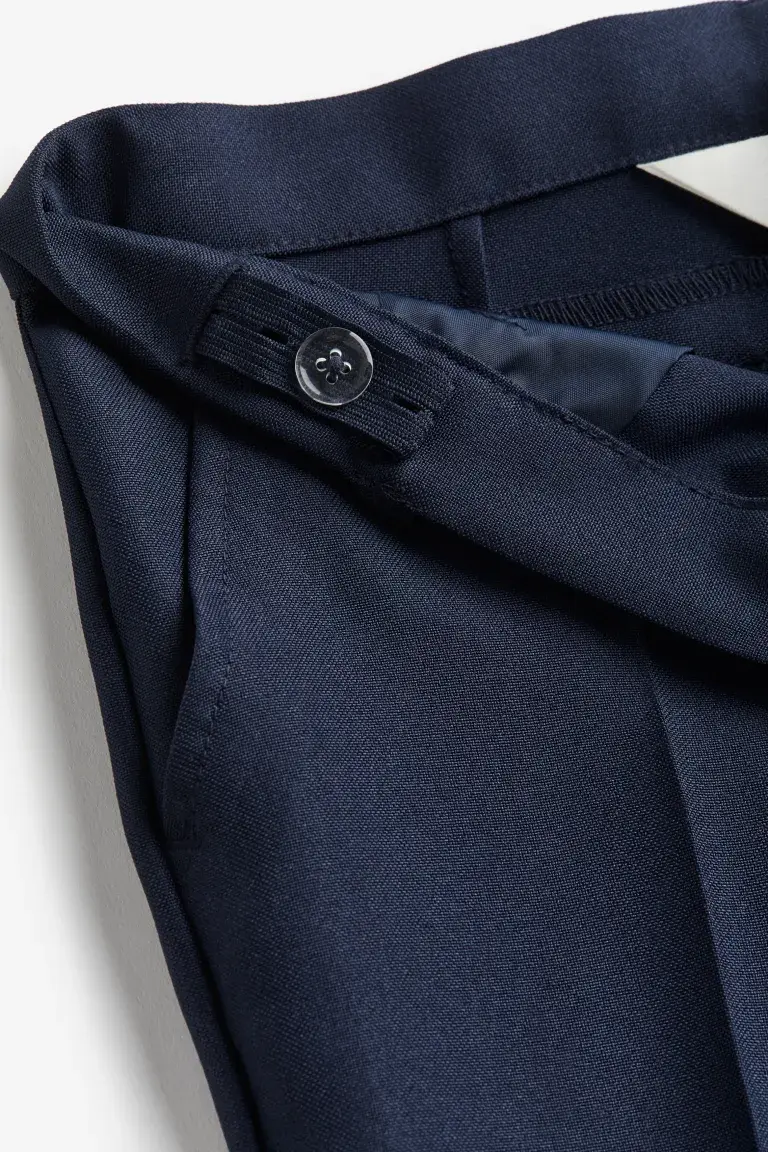 Костюмные брюки с заглаженными складками, боковыми карманами и декоративным карманом сзади. Пояс на регулируемой резинке, молнии и пуговице спереди. Размер: Внутренняя часть штанины: Длина: 46,25 см (размер 116). Длина: Длинная. Высота талии: Нормальная высота талии. Стиль: костюмные брюки. Что нужно знать: Регулируемый пояс. Состав. Полиэстер 100%. Дополнительная информация о материале. Общий вес данного изделия включает:. 100% переработанный полиэстер. Вес мелких деталей, таких как нитки, пуговицы, молнии, украшения и принты, не учитывается. Общий вес изделия рассчитывается путем сложения веса всех слоев и основных компонентов. Исходя из этого, посчитаем, какая часть этого веса приходится на каждый материал. При расчете наборов и многоупаковок все детали учитываются вместе как один товар.
