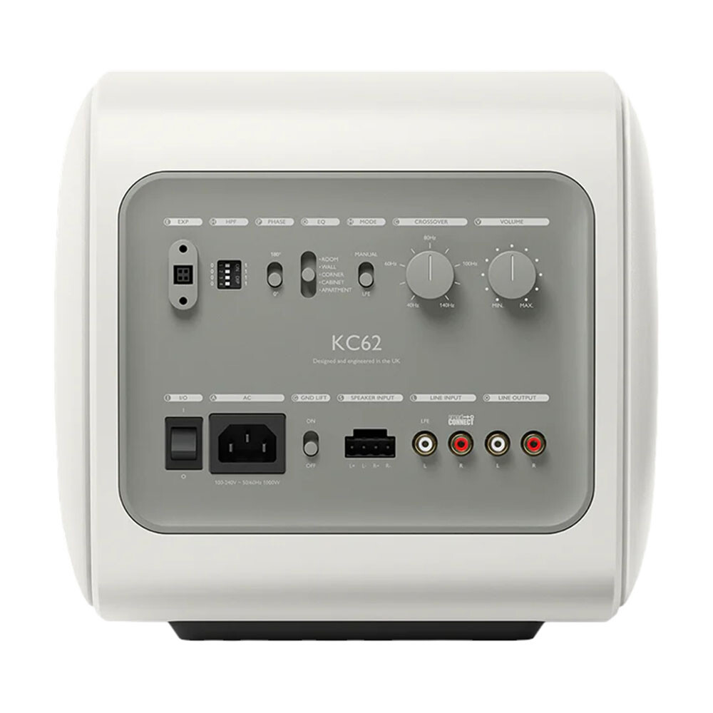 Наличие линейного высокочастотного выхода означает, что сабвуфер KEF KC62 можно использовать вместе с внешними активными динамиками, такими, как популярные полочные мониторы KEF LS50 Wireless II или беспроводные KEF LSX II.