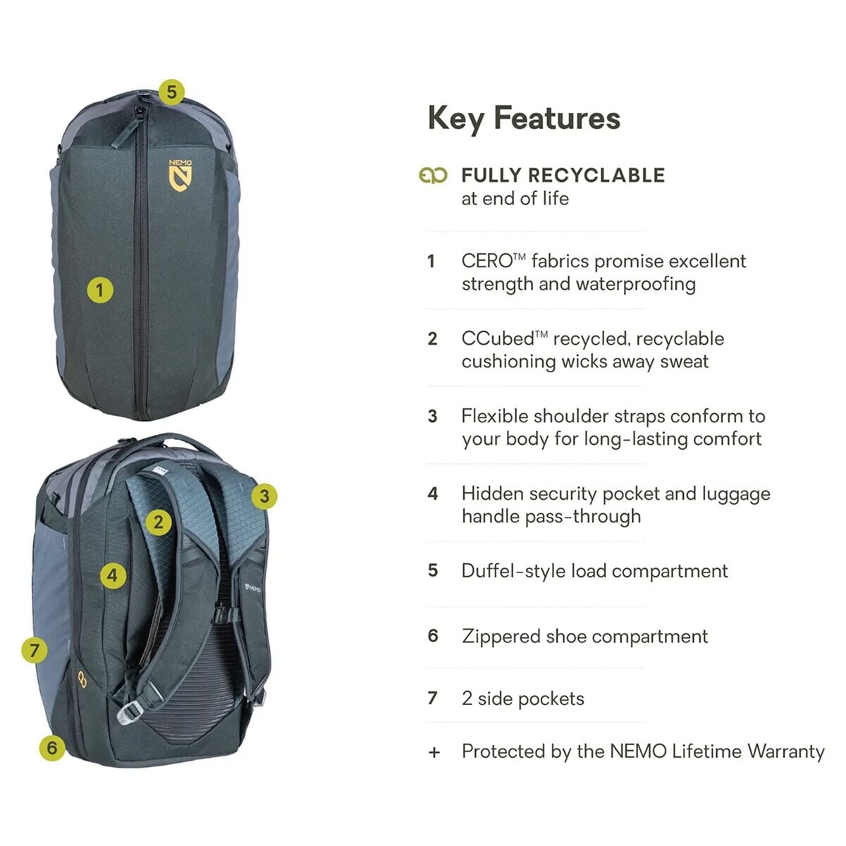 Полностью перерабатываемый рюкзак Vantage объемом 30 л — это идеальная сумка для выходных, в которой используется революционный набор эксклюзивных тканей NEMO, обеспечивающих устойчивость к истиранию и водонепроницаемости, а также новаторская альтернатива пене с превосходными амортизирующими и впитывающими свойствами. Созданная с учетом повседневных приключений и путешествий, сумка имеет спортивное отверстие, благодаря которому упаковка на длинные выходные (или недельное путешествие) становится проще простого. Помимо функциональности и высокой производительности, серия Vantage, являющаяся частью нашей коллекции Endless Promise, обладает очень явным и важным преимуществом: она создана для того, чтобы навсегда оставаться вне свалки. Прочные, регулируемые и легко ремонтируемые пакеты Endless Promise предназначены для использования как можно дольше, но когда они наконец достигают своего предела, NEMO взяла на себя ответственность обеспечить их полную переработку. В результате этой проблемы проектирования возможности вторичной переработки возникли две важные инновации в области материалов. Во-первых, наша новая запатентованная ткань CERO соткана из переработанной пряжи, имеет прочность на разрыв до 2 раз выше, чем отраслевой стандарт, а также в 1,5 раза более водостойкая, чем другие рюкзаки на рынке — идеально подходит для незапланированных ливней. ! Он также полностью изготовлен из переработанного (и пригодного для вторичной переработки) ПЭТ. Аналогичным образом, вместо традиционных неперерабатываемых пенопластов для амортизации мы представили CCubed, переработанный и пригодный для вторичной переработки материал, который позволяет избежать вредных газовых выделений, наблюдаемых при использовании EVA. Кроме того, амортизация CCubed на 97% состоит из воздуха, что, в отличие от пены, позволяет быстро отводить пот и способствовать его испарению. Сопоставление тела с зонами потоотделения обеспечивает заметно более сухое и прохладное ощущение даже в жаркие летние дни. Мы ожидаем, что Vantage будет в пути в течение длительного времени, но когда он совершит свой последний рейс, его можно будет отправить обратно в NEMO для полной переработки, что предотвратит дальнейшие отходы и позволит использовать его в качестве нового снаряжения для следующего искателя приключений.