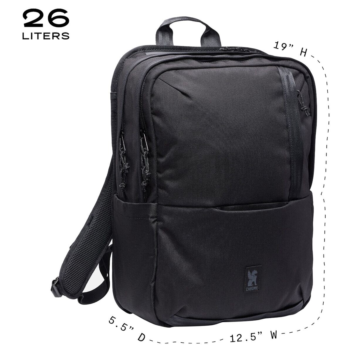 Ответственный сбор: переработано/перепрофилировано. Материал: переработанный нейлон 1050D, переработанный нейлон 1680D, переработанный полиэстер 600D, переработанный полиэстер 150D. Объем: 26 л (1586 куб. Дюймов). Карманы: [внешний] 1 передний на молнии, 2 боковых, 1 отделение для ноутбука на молнии, [внутренний] 1 сетчатый на молнии, 3 кармана для мелочей, 1 карабин для ключей. Плечевые ремни: мягкие, регулируемые. Доступ: сверху. Размеры: 12,5 х 5,5 х 19 дюймов. Чехол для ноутбука: 16 x 11,5 дюймов. Заявленный вес: 2 фунта 9,6 унций. Деятельность: повседневная, путешествия.