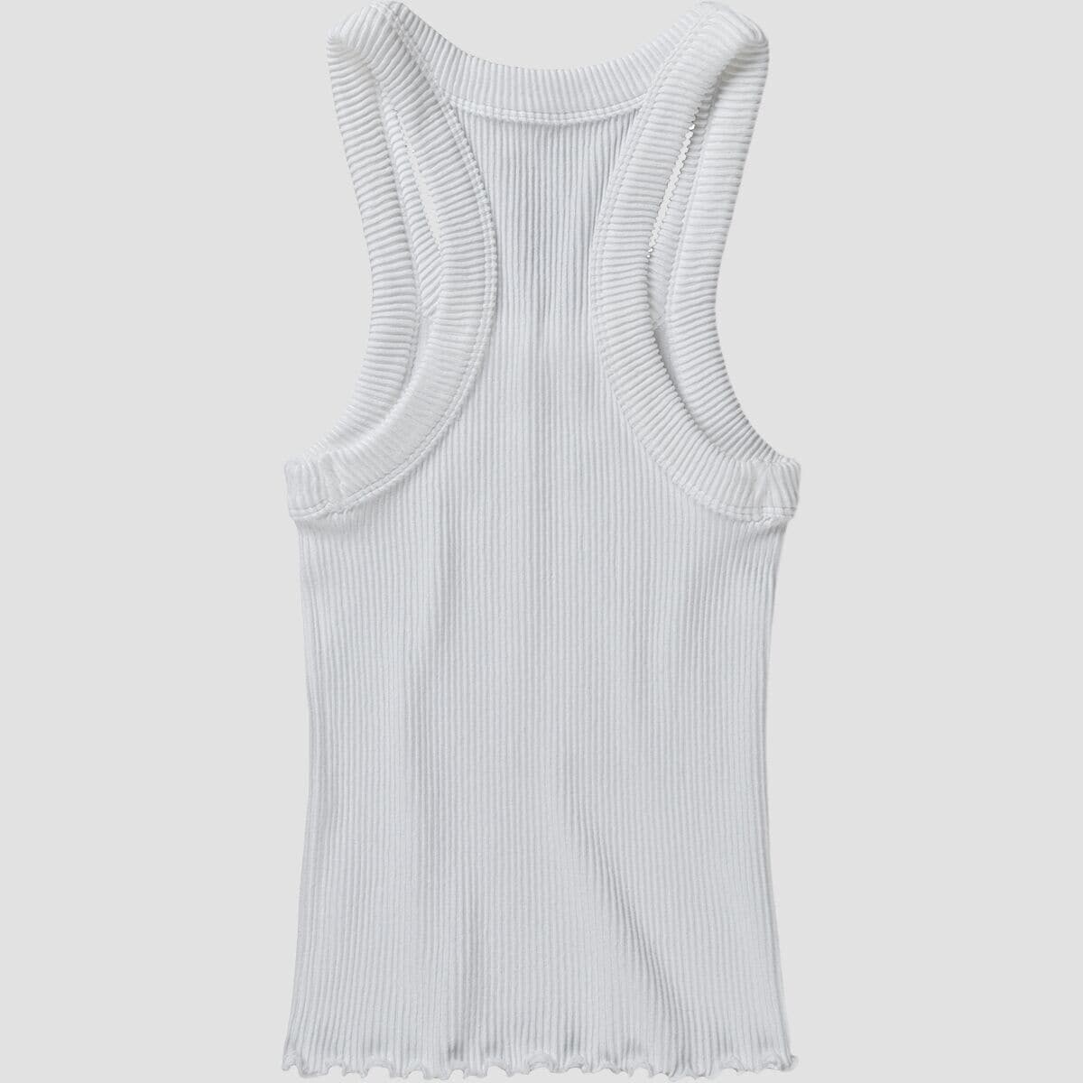 • Вечная вневременная майка без рукавов из мягкой ребристой ткани с круглым вырезом.