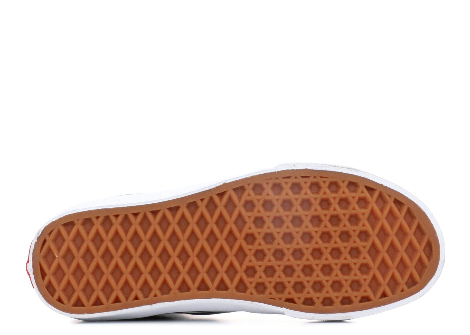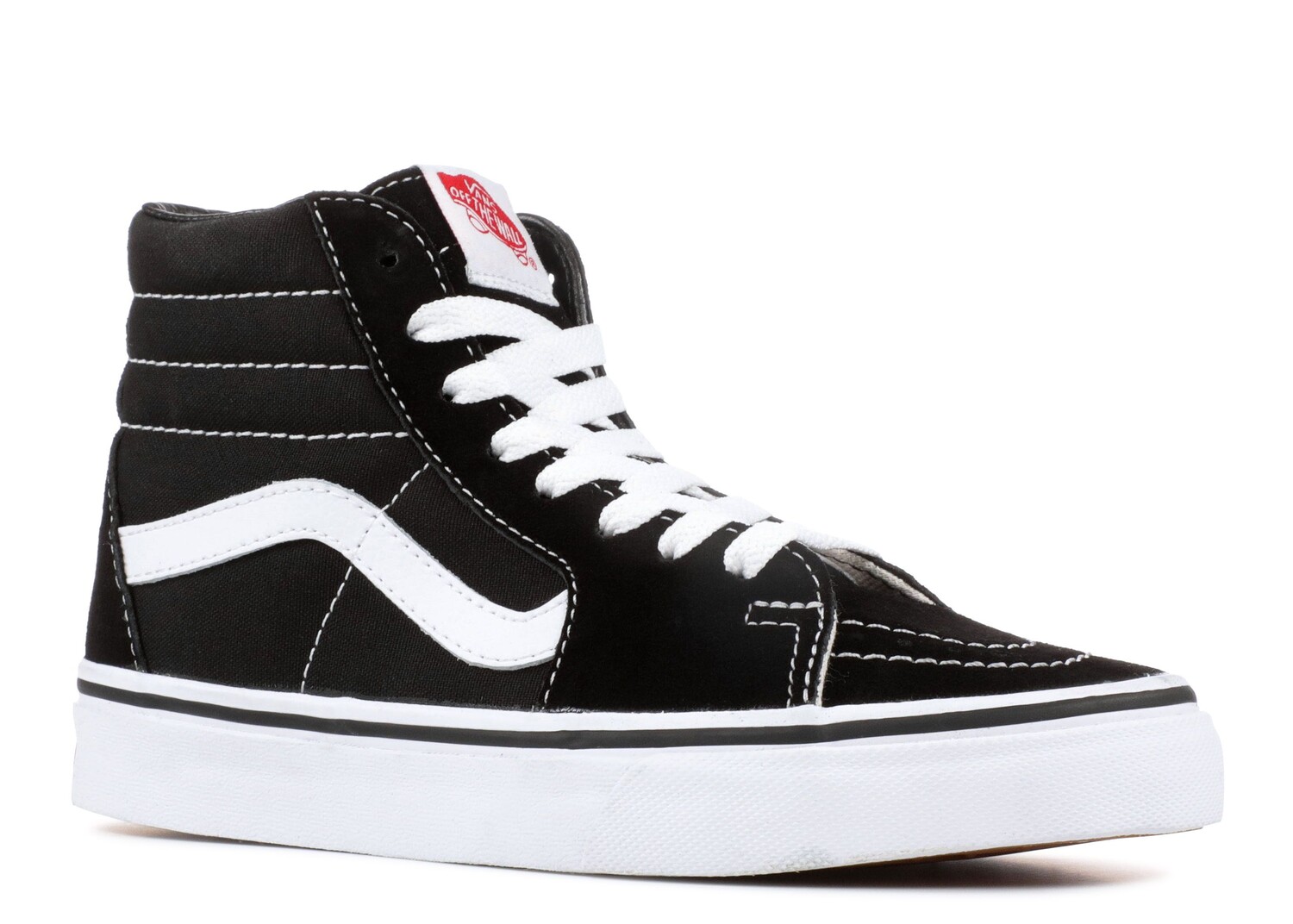 Sk8-Hi «Black White» демонстрирует базовую цветовую гамму классической конструкции, состоящую из черной парусины и соответствующей черной замши на союзке, проушинах и вставке в области пятки. Детали включают белую контрастную строчку, белую кожаную полоску в стиле джаз и белую резиновую межподошву с красным номерным знаком Vans. Под ногами легендарная вафельная подошва бренда, выполненная из цепкой резины.