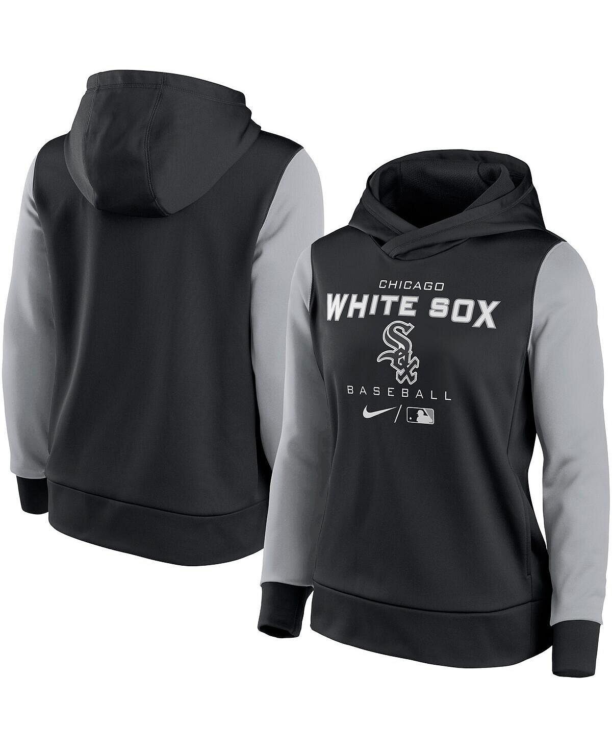 Женская черно-серая толстовка с капюшоном chicago white sox authentic collection pullover Nike, мульти