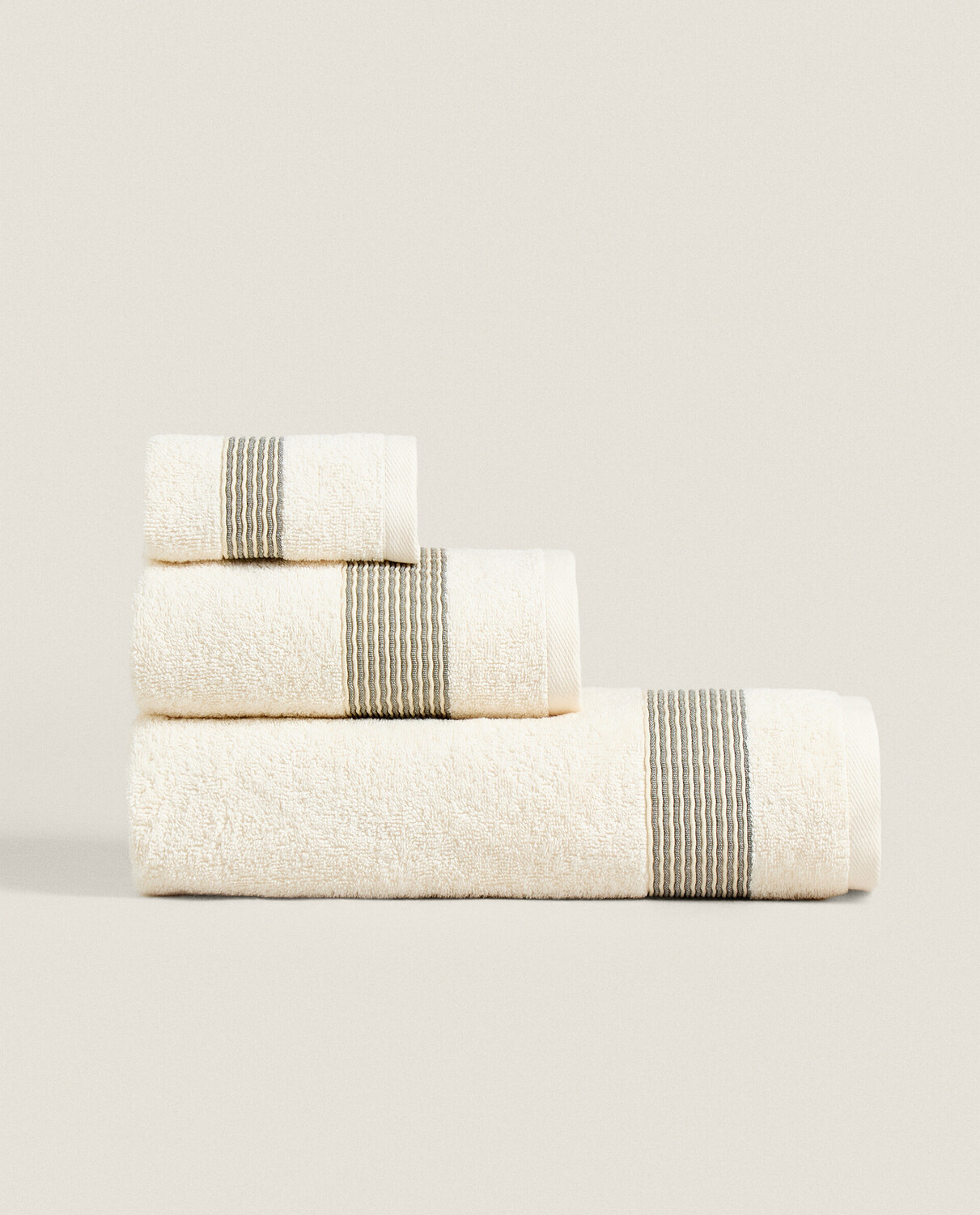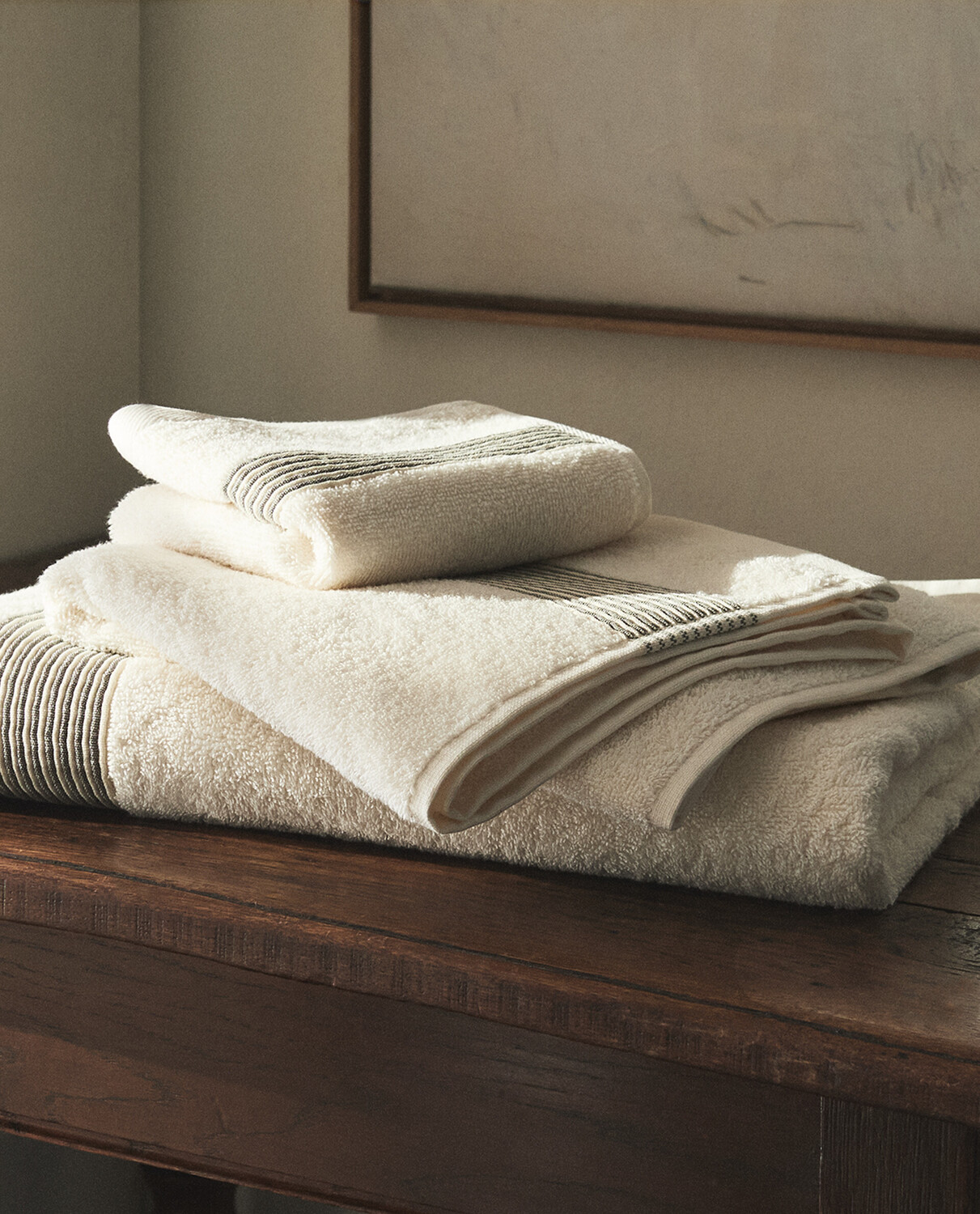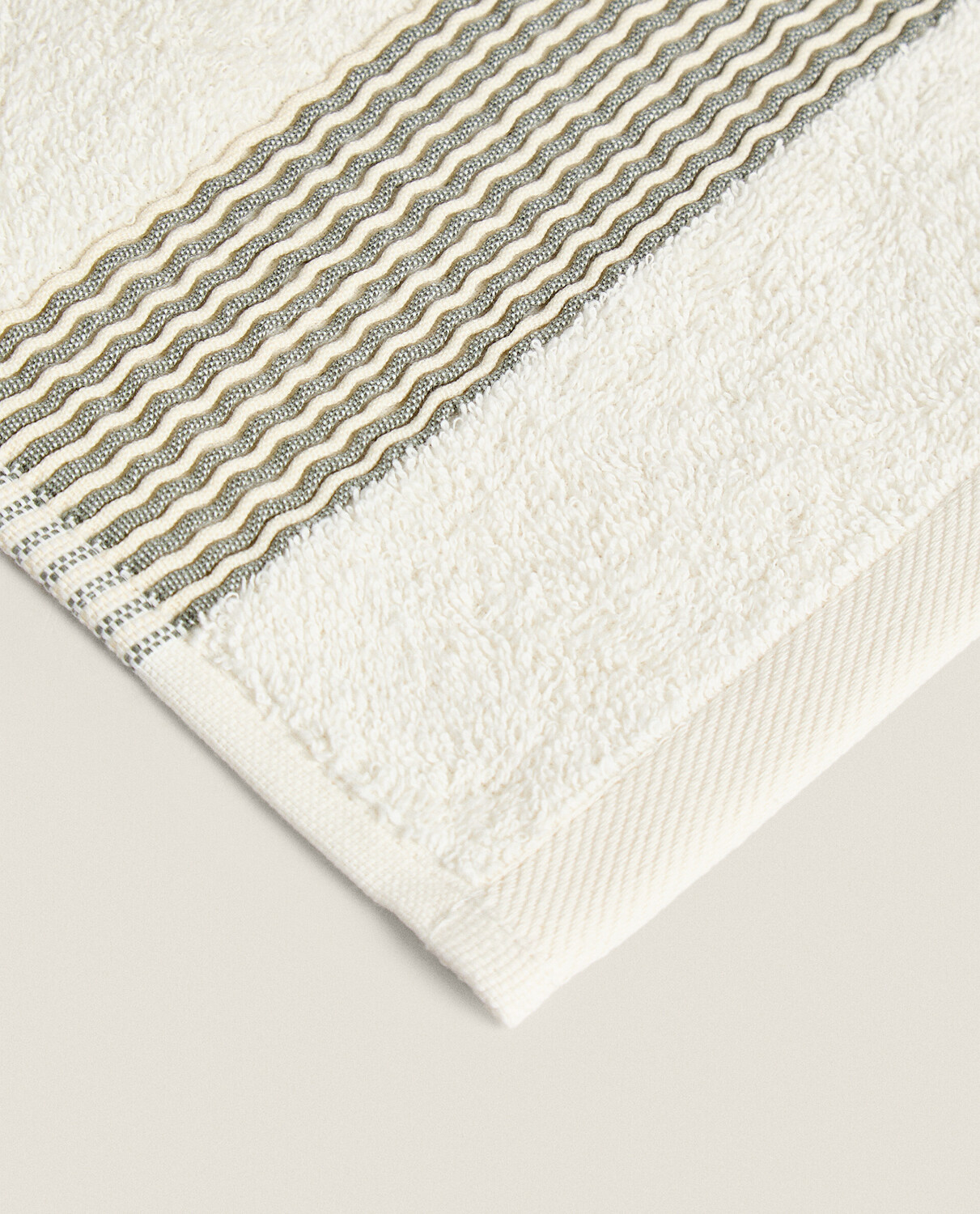 Хлопковое полотенце с контрастной плиссированной каймой.