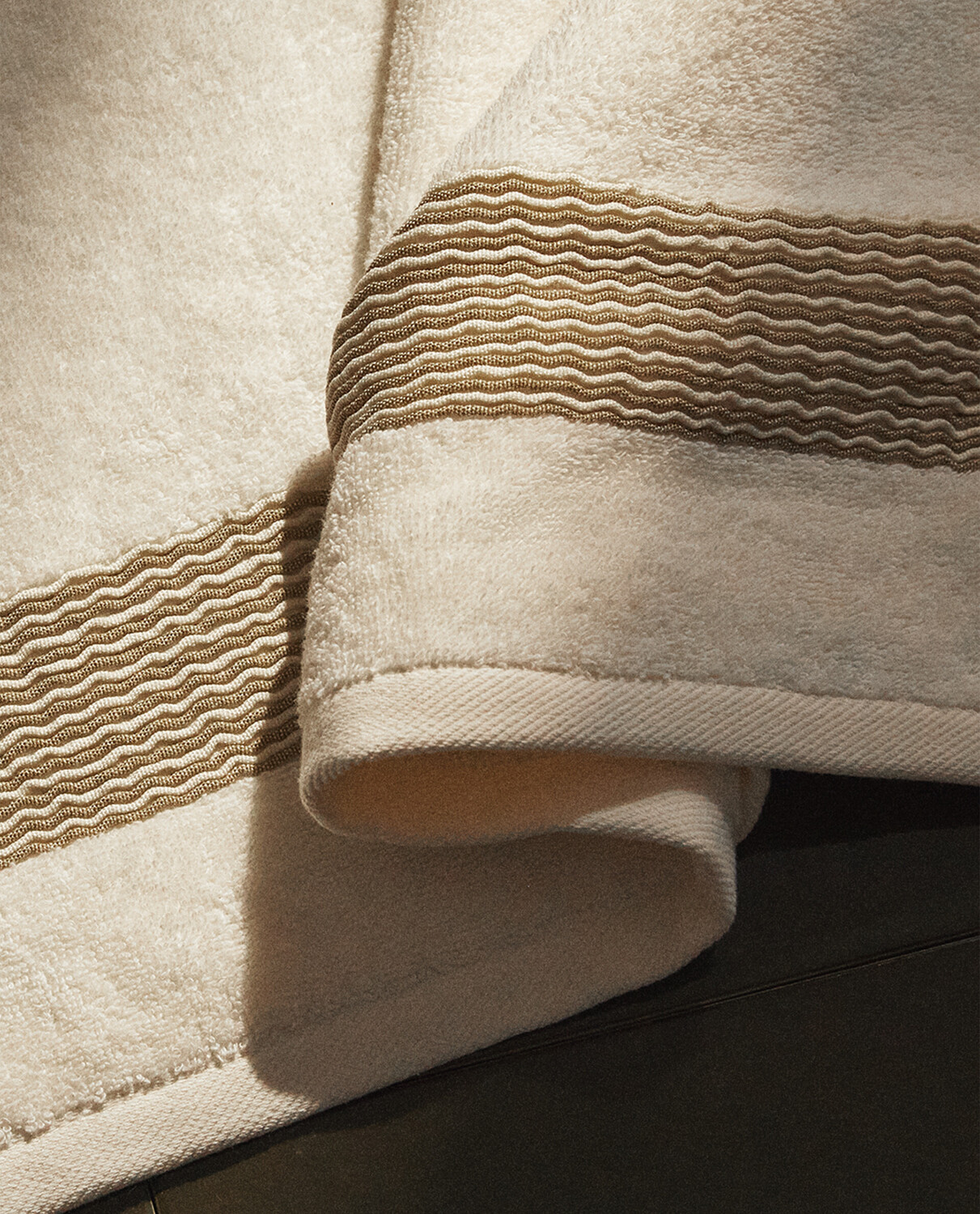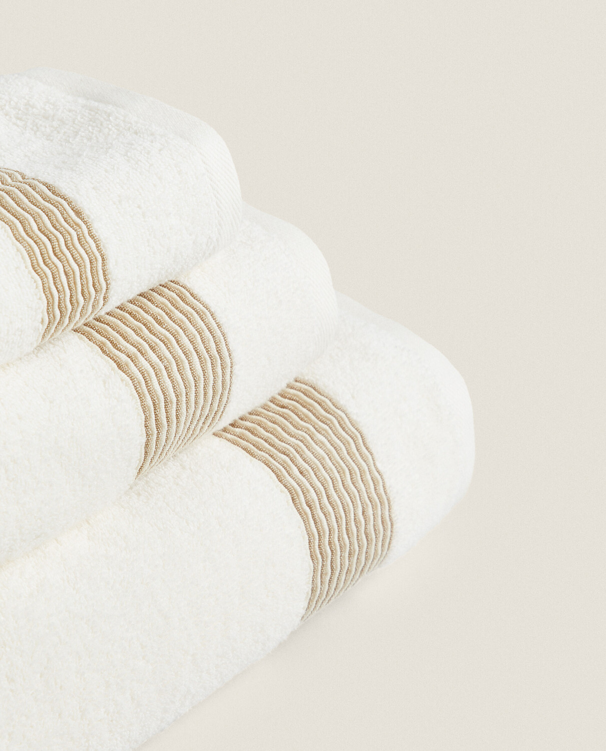 Хлопковое полотенце с контрастной плиссированной каймой.