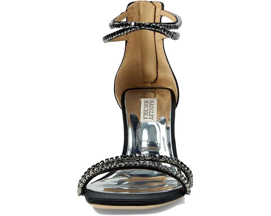 Сандалии Badgley Mischka Lillie с мерцающими ремешками, украшенными кристаллами на пальцах ног и вокруг щиколотки, идеально подходят для создания эффектного образа. Застежка-молния сзади обеспечивает удобство ношения. Эти шикарные и удобные сандалии с двумя ремешками удобно носить в течение долгих часов. Сделайте эффектный вход на любую вечеринку или мероприятие, надев эти хрустальные сандалии.