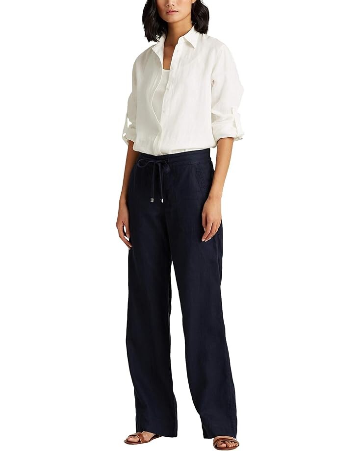 Упростите свой образ с помощью легких льняных широких брюк LAUREN Ralph Lauren.