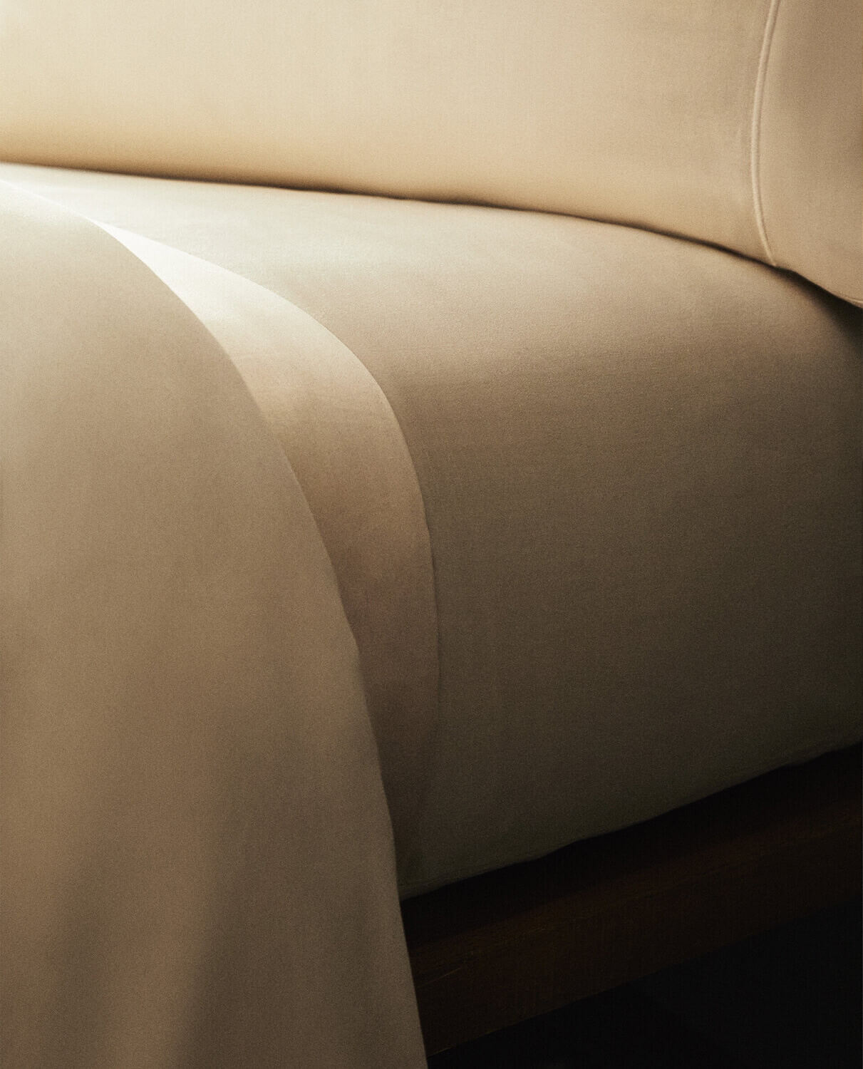 Простыня на подгонку из хлопкового сатина плотностью 300 нитей. Регулируемые эластичные уголки для матраса толщиной до 30 см. Сатин – материал, который выделяется своей мягкостью и светящимся внешним видом. Нежная, но прочная ткань с тонким блеском и приятной текстурой делает ее уникальной тканью.
