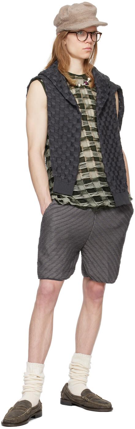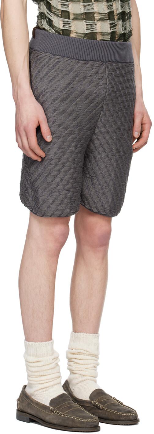 Эксклюзивные серые шорты SSENSE. Вяжем шорты из искусственного шелка. Лесенка и шевронный узор по всей поверхности.