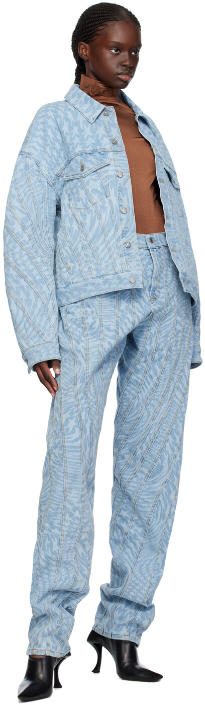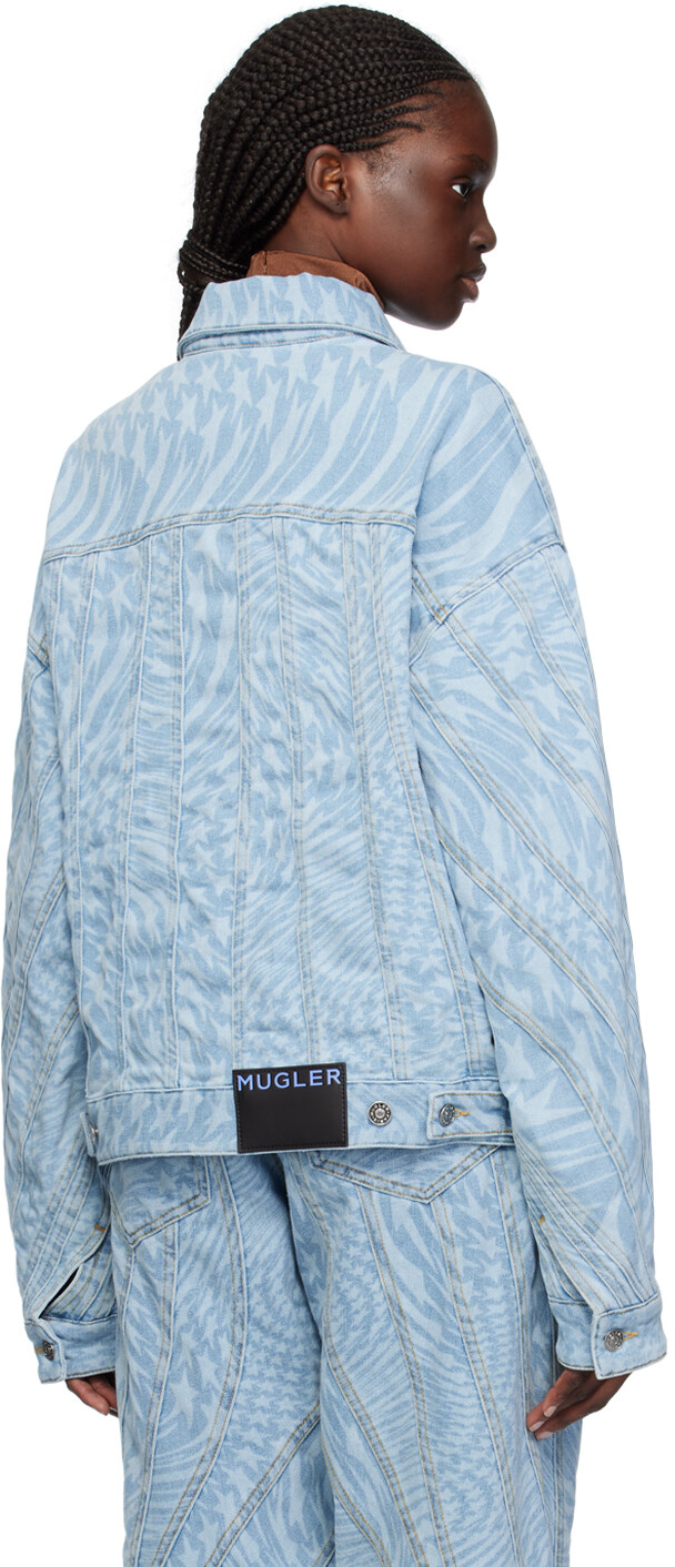 Синяя джинсовая куртка со звездами Mugler, цвет Laser printed star