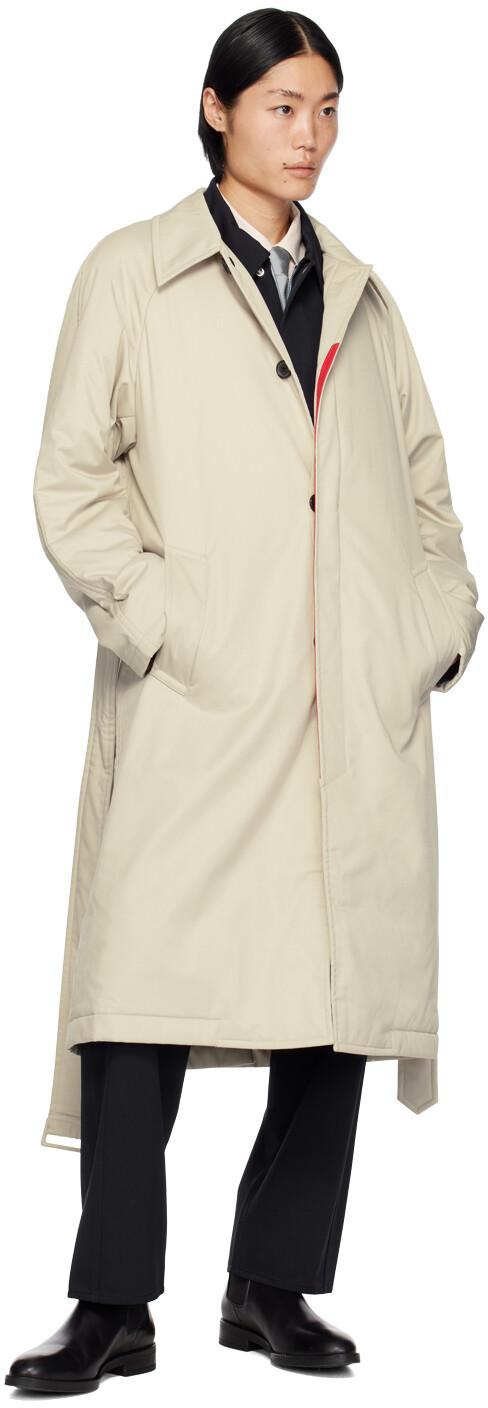 Бежевое пальто Commission Edition. Утепленное твиловое пальто из смеси полиэстера и хлопка. Расширенный воротник Потайная застежка на пуговицы Петли для ремня и ремень с застежкой Прорезные карманы· Рукава реглан Центральная шлица сзади по краю Прорезные карманы внутри Атласная подкладка Роговая фурнитура. Часть сотрудничества Paul Smith x Commission. Цвет поставщика: Белый. Основная часть: 65 % полиэстер, 35 % хлопок. Наполнитель: 100% переработанный полиэстер. Подкладка: 100% полиэстер. Сделано во Вьетнаме.