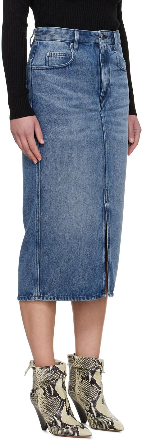 Синяя джинсовая юбка-миди Tilauria. Юбка из неэластичного денима Tencel™ из смеси лиоцелла и хлопка. Потертости и потертости по всей поверхности. Петли для ремня Пять карманов Молния Центральная шлица спереди по краю Кожаная заплатка с логотипом на поясе сзади Серебристая фурнитура с выгравированным логотипом Цвет поставщика: Голубой 77% лиоцелл, 23% хлопок. Сделано в Тунисе. 241600F092007