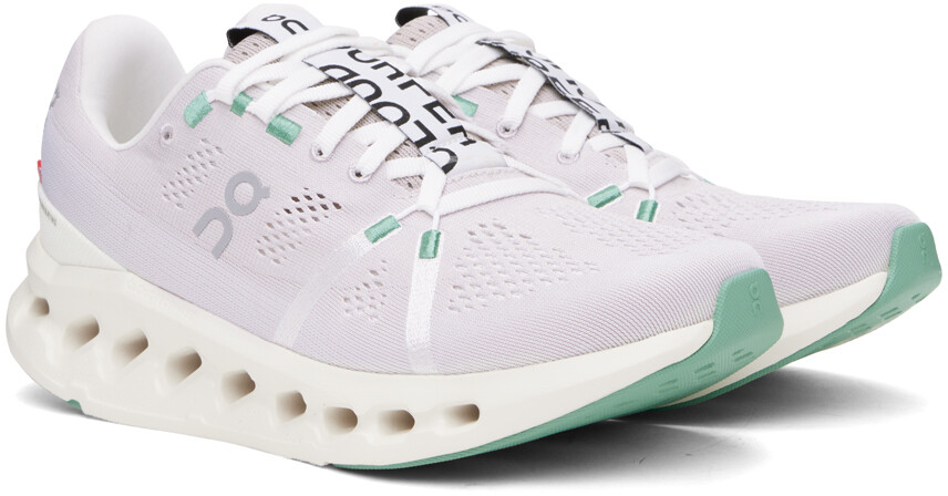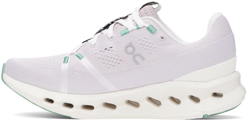 Бежево-фиолетовые кроссовки Cloudsurfer. Низкие кроссовки из сетчатой ткани бежевого и фиолетового цвета.