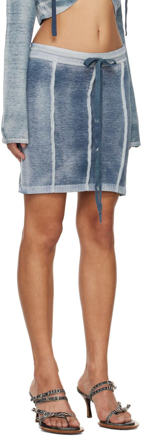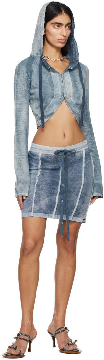 Синяя мини-юбка Enyo. Юбка спицами из натурального хлопка. Потертости и защемленные швы по всей поверхности.