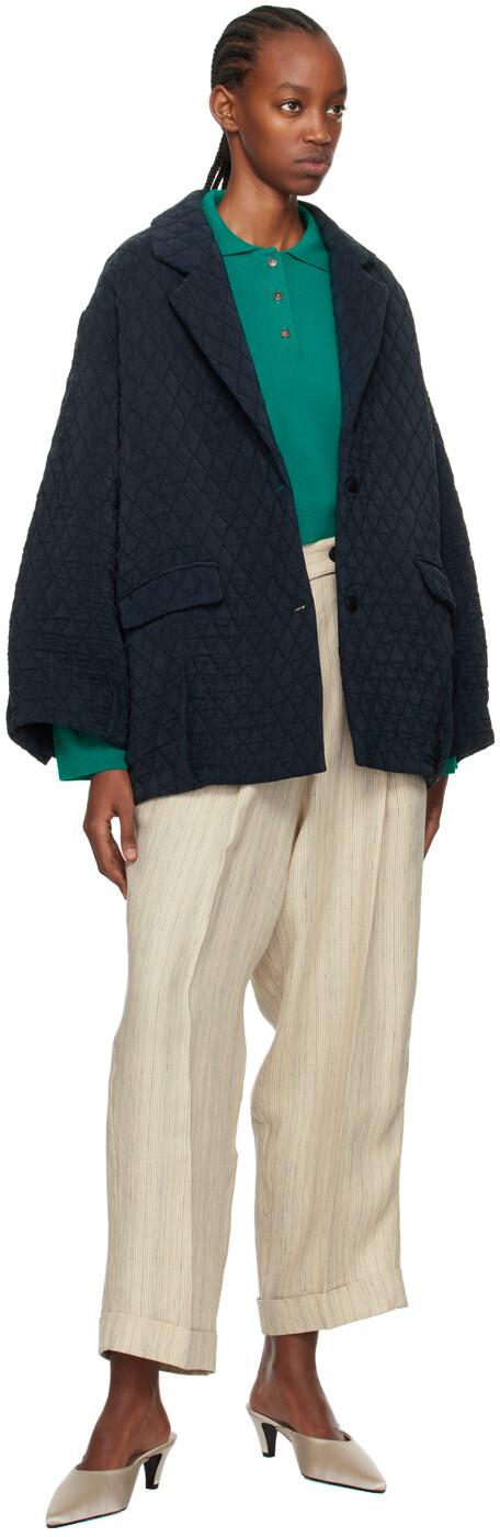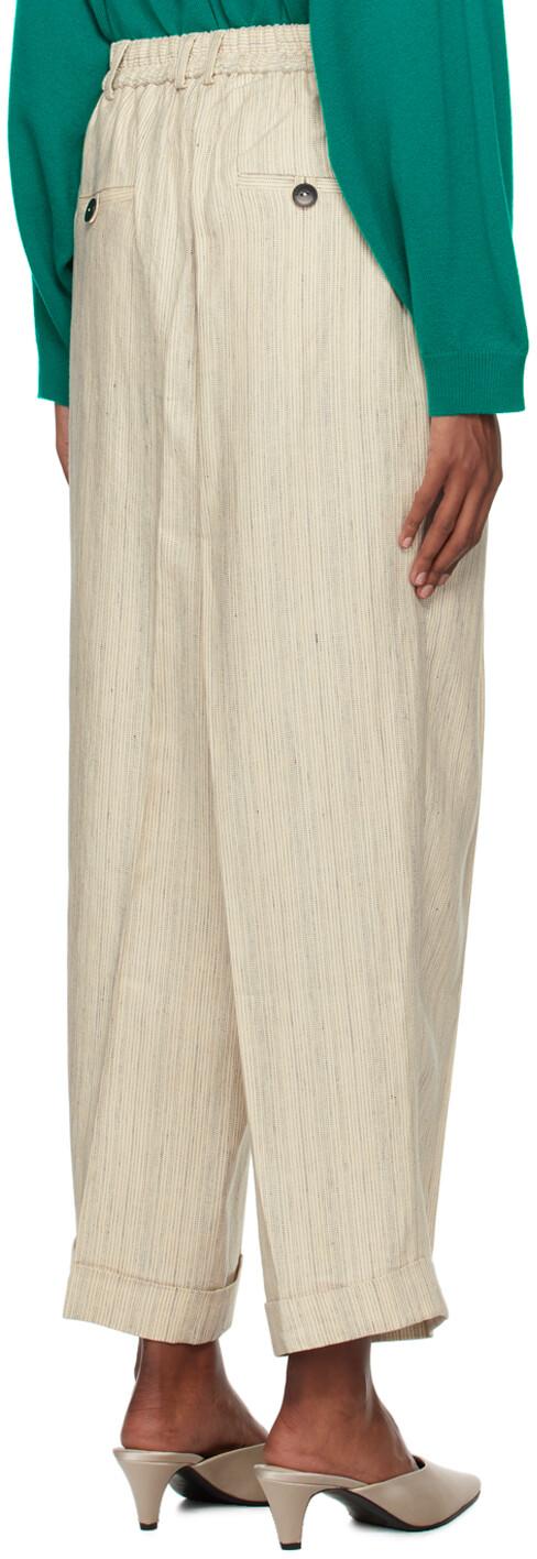 Бежевые брюки свободного кроя. Брюки из твила из органического льна. Полоски по всей поверхности.
