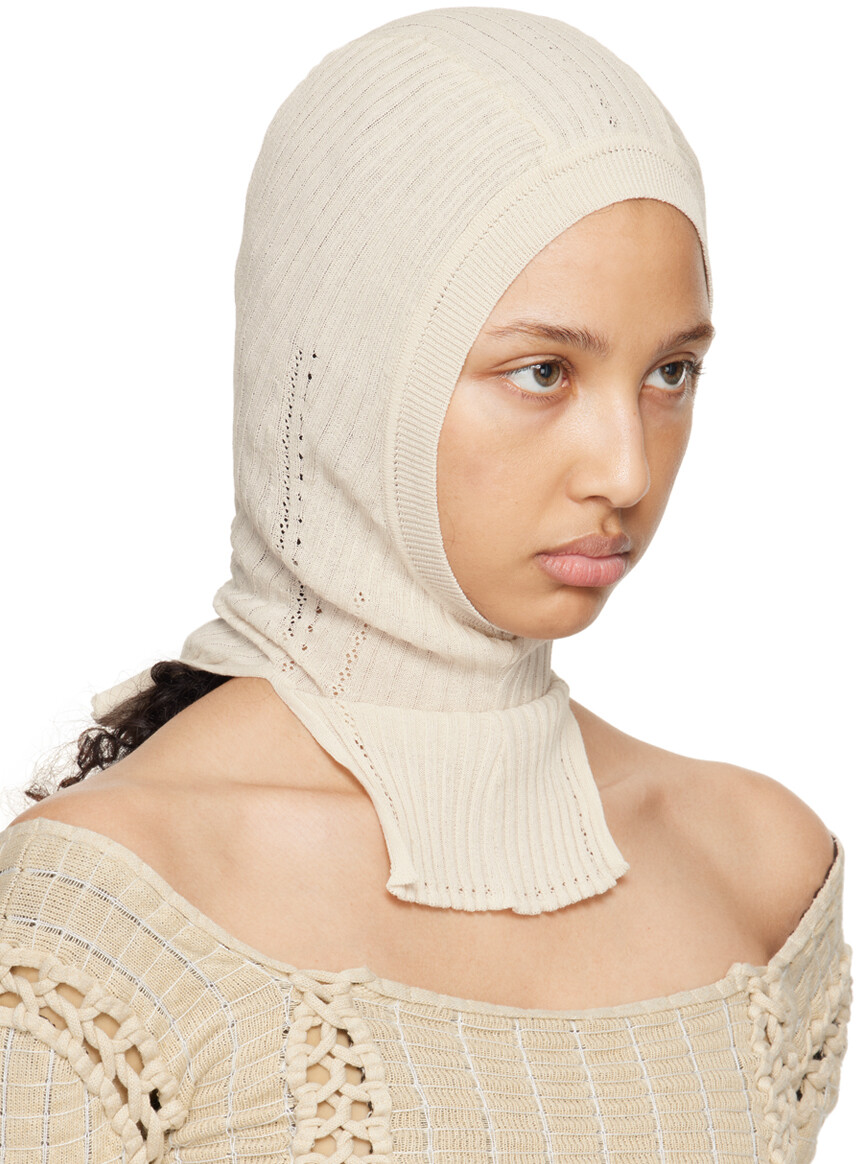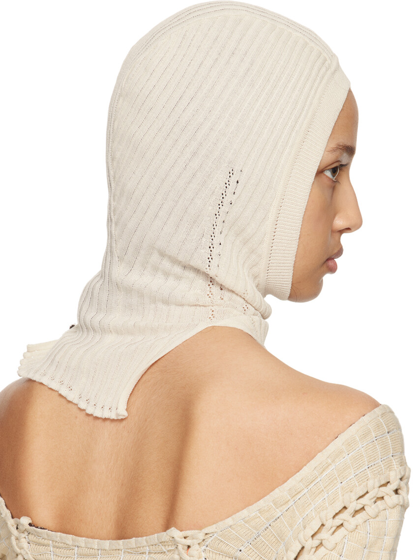 Off-White Бродячая Балаклава. Хлопковая балаклава рельефной вязки кремового цвета. · Детали в виде пуантов по всей поверхности · Вентиляционные отверстия на воротнике. Маски для лица и лицевые покрытия являются окончательной продажей и не подлежат возврату или обмену. Цвет поставщика: Кремовый. 100% хлопок. Сделано в Великобритании.