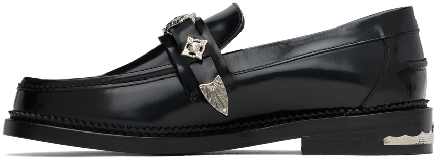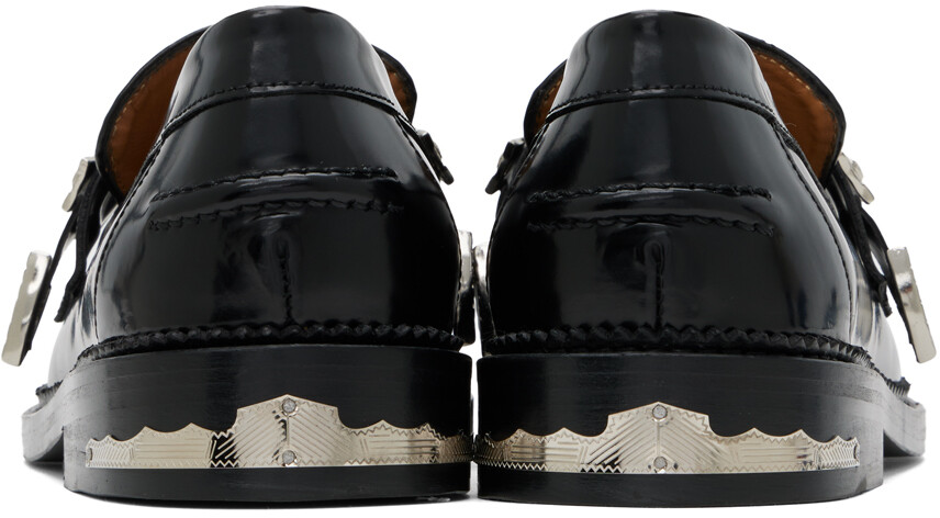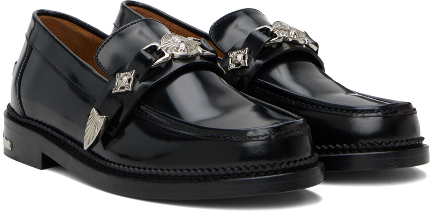 Черные полированные лоферы. Лоферы из полированной кожи черного цвета. Графическая фурнитура на союзке и пятке. Сводной носок Ремешок на союзке Защемленный шов на заднике Рельчатая отделка по ранту Подкладка из замши и полированной кожи Многослойный кожаный каблук с резиновыми вставками Кожаная подошва Серебристая фурнитураЦвет поставщика: Черный Верх: кожа. Подошва: кожа, резина. Сделано в Португалии.
