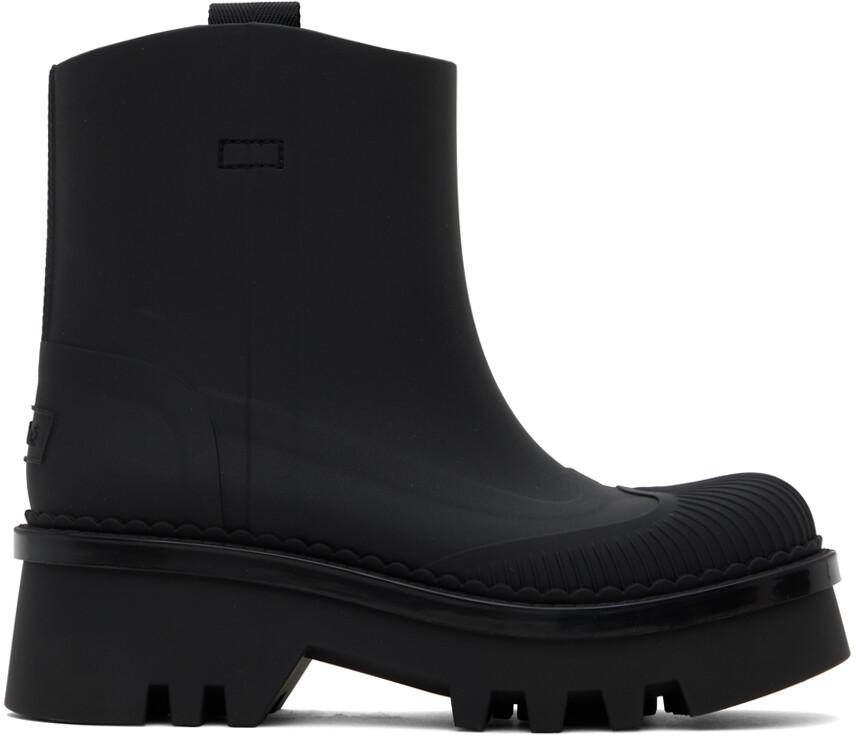 Черные резиновые сапоги Raina. Черные ботинки из ТПУ на биологической основе. Текстурированный носок Петли с логотипом на воротнике Прорезиненная нашивка с логотипом на пятке Подкладка из джерси из проклеенного ПЭТ Протектор Подошва из ТПУ на биологической основе Каблучок: H2" Цвет поставщика: Черный Термопластичный полиуретан. Производство Румыния. 241338F113005