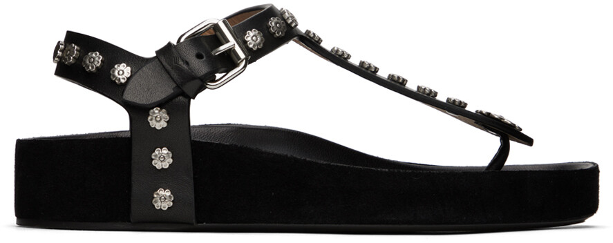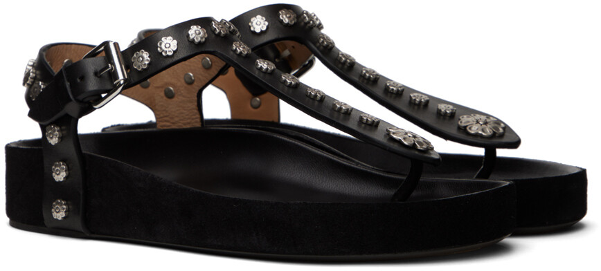 Черные сандалии Эноре. Черные кожаные сандалии с зернением. · Цветочная фурнитура по всей поверхности Открытый носок · Ремешок в виде стрингов на союзке · Ремешок на щиколотке с пряжкой · Тисненый логотип на формованной кожаной стельке · Подошва с замшевым покрытием · Кожаная подошва с резиновыми вставками Цвет поставщика: Черный/ Серебристый Верх: кожа. Подошва: кожа, резина. Сделано в Португалии.