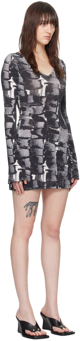 Мини-платье с разноцветным принтом. Платье купро эластичной вязки в рубчик. Графический рисунок напечатан по всей поверхности.
