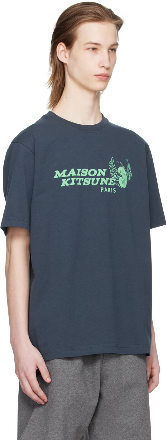 Темно-синяя футболка Racing Wheels Maison Kitsune