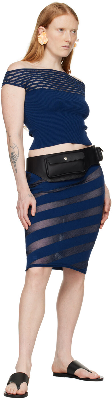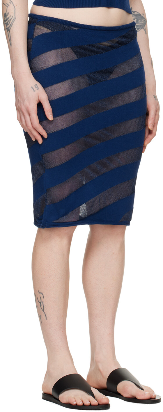 Темно-синяя юбка-миди с изображением зебары. Юбка из трикотажной смеси вискозы и переработанного полиэстера. Полупрозрачные полосы по всей длине.