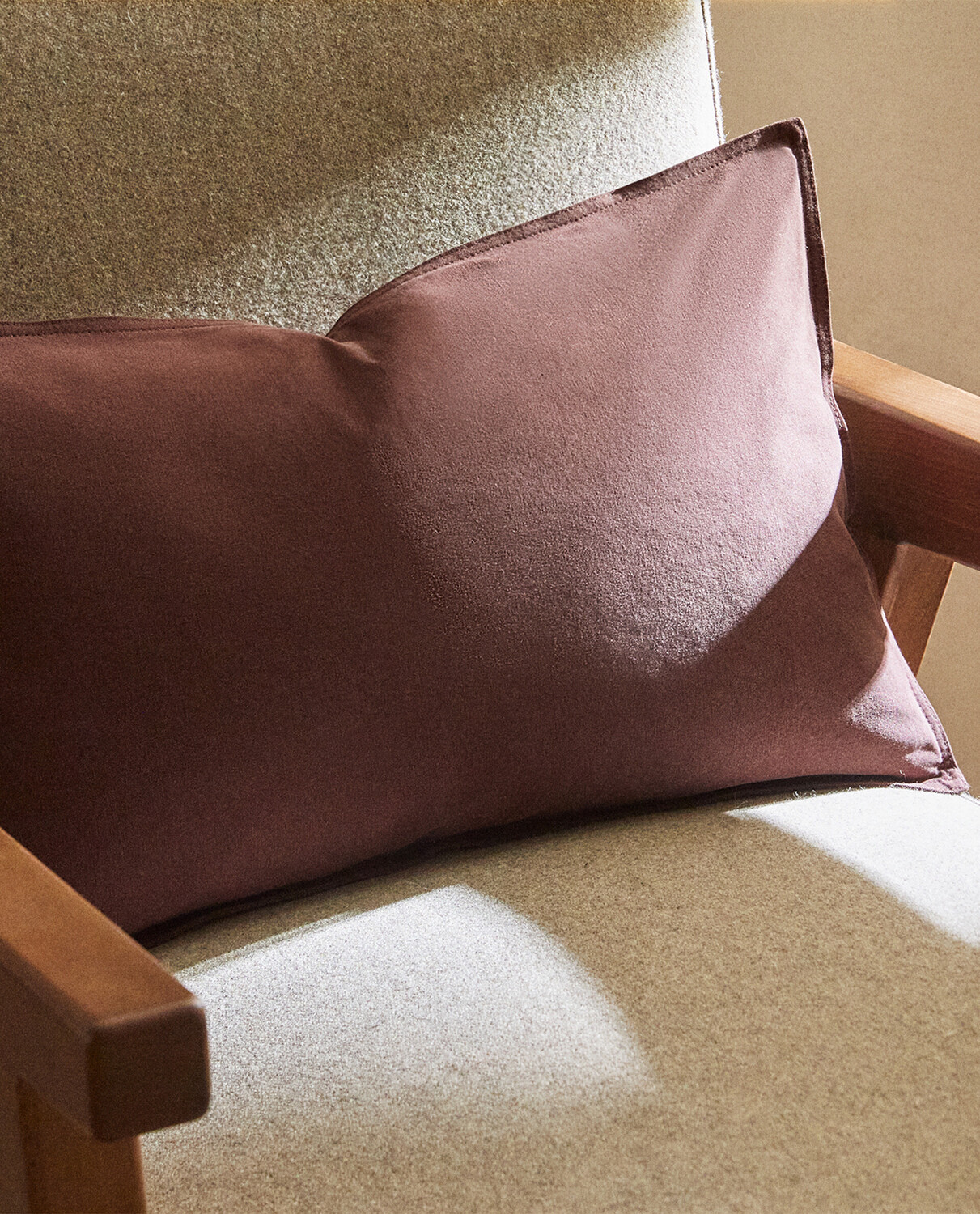 Хлопковый однотонный чехол для подушки с верхней строчкой по краям. Наполнитель не входит в комплект.