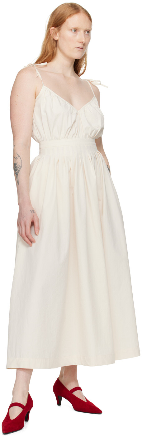 Off-white платье макси Sarah. Платье из хлопкового поплина. Складки и сборка по всей длине.