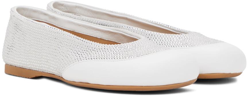 Белые хрустальные балетки. Балетки из замши ягненка белого цвета.