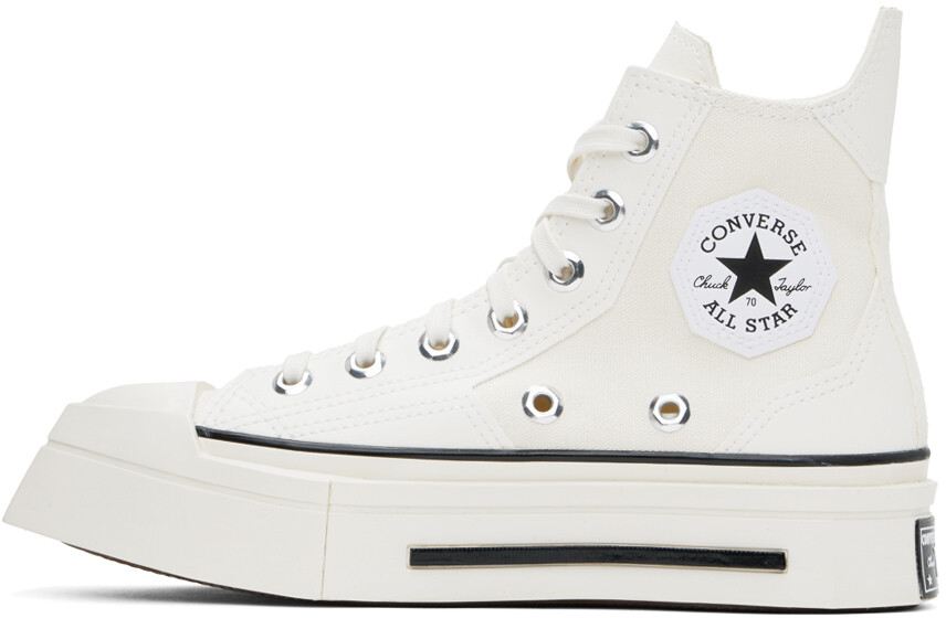 Белые кроссовки Chuck 70 De Luxe Squared. Высокие кроссовки из парусины белого цвета. Отделка из искусственной кожи по всей поверхности Квадратный резиновый носок Шнуровка Удлиненный язычок и пятка Нашивка с логотипом и люверсы на внутренней стороне Мягкая стелька OrthoLite® Прорезиненная нашивка с логотипом на пятке Прорезиненная отделка скульптурной межподошвы Резиновая подошва с рисункомЦвет поставщика: Egret/Black/Egret Верх: текстиль. Подошва: резина. Сделано во Вьетнаме.