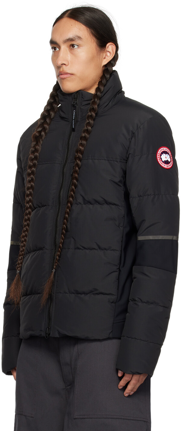 Черный пуховик HyBridge. Стеганая куртка из водоотталкивающего нейлона CORDURA® с наполнителем из фая и эластичного нейлонового джерси. Светоотражающая отделка по всей поверхности. Конструкция со вставками · Воротник-стойка Двусторонняя застежка-молния Карманы на молнии Нашивка с логотипом на рукаве Вставки из трикотажных манжет Power Stretch®· Эластичные лямки и накладной карман внутри Подкладка полностью лакированная. Цвет поставщика: черный. Наполнитель: 90 % утиный пух, 10 % утиное перо. Основная часть 1: 100 % полиамид. Основная часть 2: 74 % полиамид, 26 % эластан. Подкладка: 100% полиэстер. Сделано в Канаде.