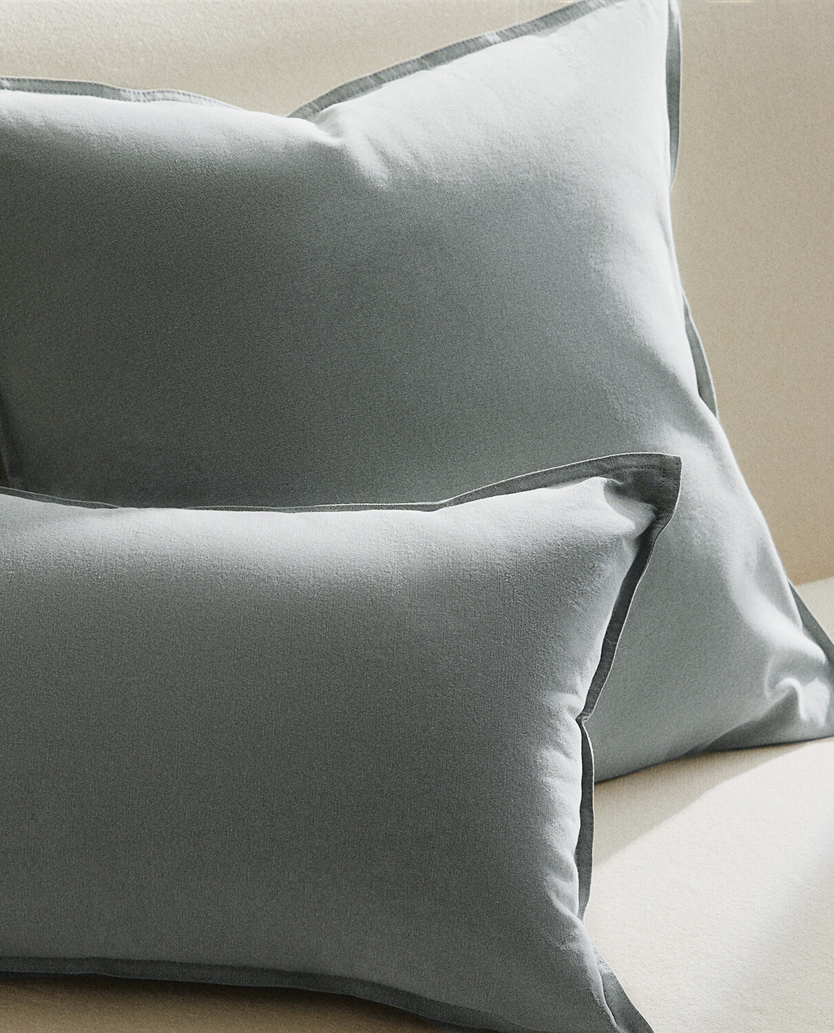 Хлопковый однотонный чехол для подушки с верхней строчкой по краям. Наполнитель не входит в комплект.
