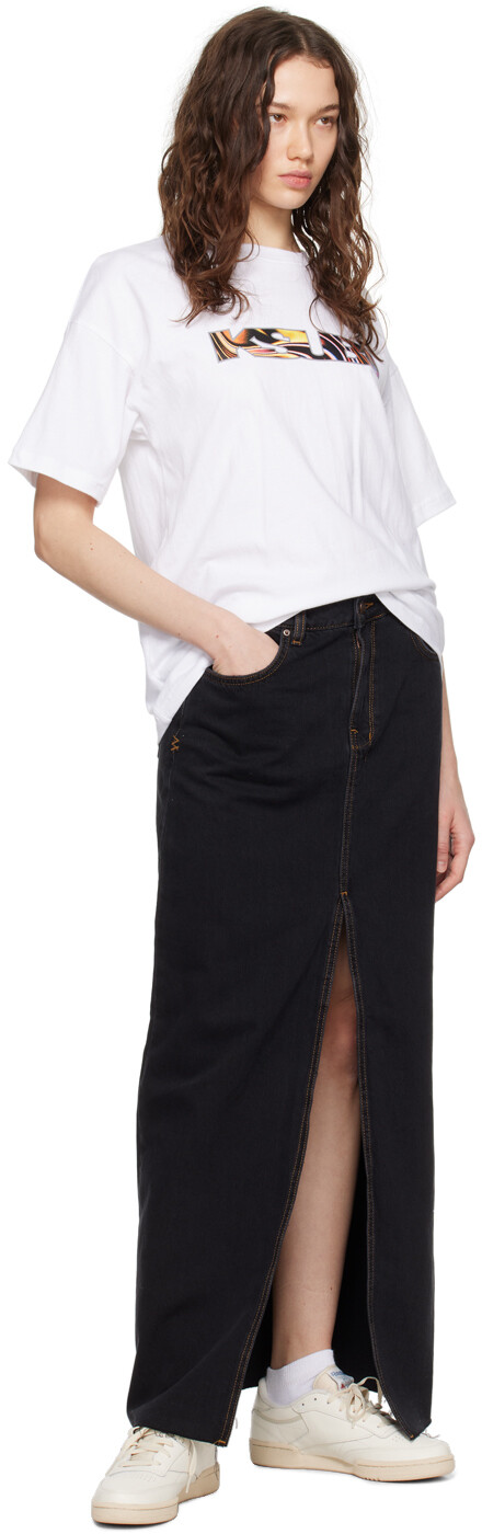 Черная джинсовая длинная юбка Kara. Легкая джинсовая юбка из неэластичного денима. Заниженная посадка Петли для ремня Пять карманов Молния Центральная шлица спереди Необработанный край по низу Вышитая графика сзади Съемная текстильная бирка на заднем кармане Фурнитура бронзового цвета с выгравированным логотипом Контрастная коричневая строчка Цвет поставщика: Черный 100% хлопок. Сделано в Турции. 241088F093000