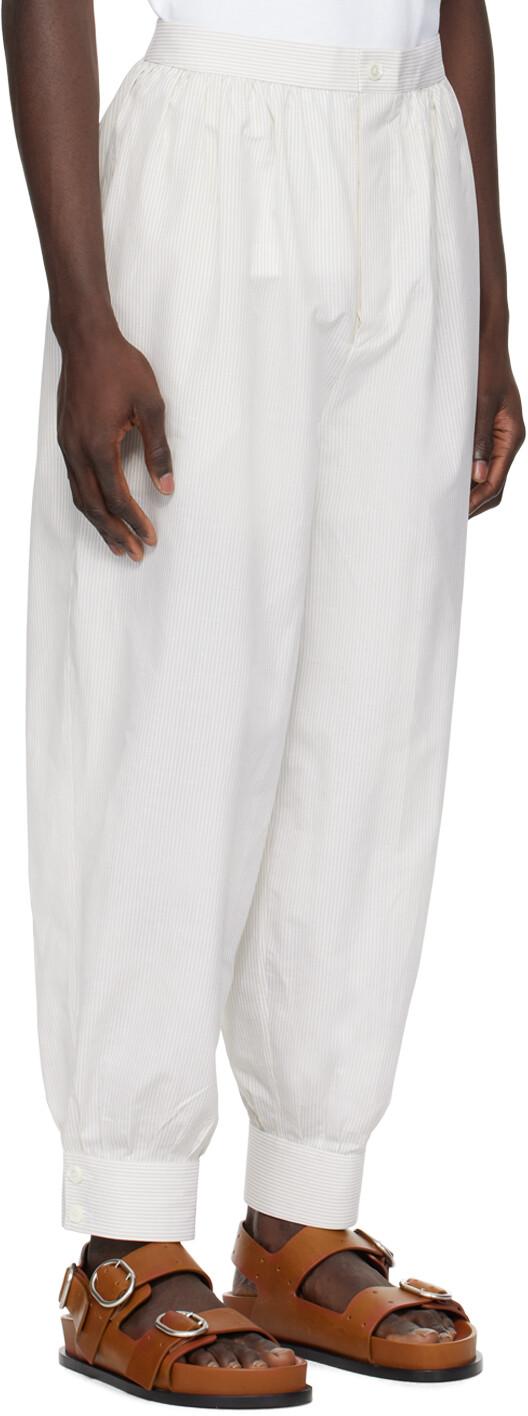 Брюки в бело-бежевую полоску. Брюки из поплина из смеси хлопка и льна. Полоски по всей длине.