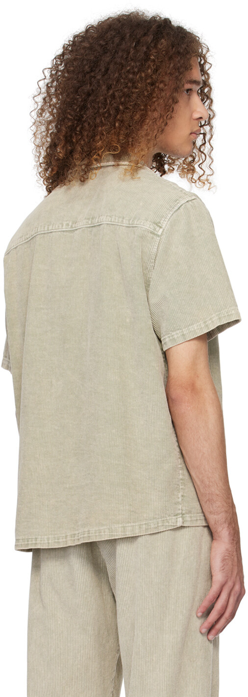 Рубашка цвета хаки на пуговицах. Рубашка из хлопкового вельвета.