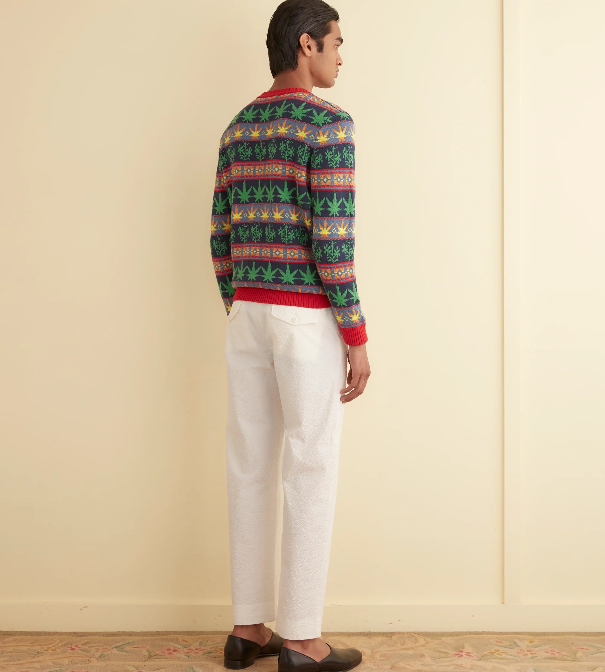 Свитер вдохновлен узорами британского дизайнера трикотажа, который шил свитера для лондонских бутиков в 1960-х и 1970-х годах. Мы переосмыслили некоторые из ее ярких мотивов, чтобы создать ботанический узор для этого свитера.