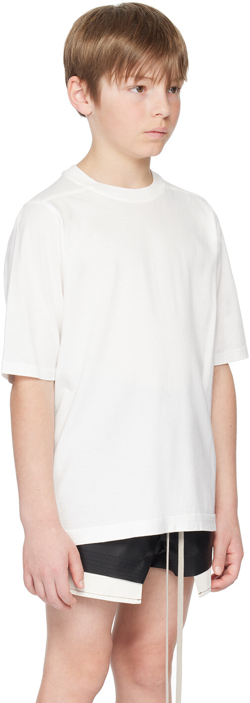 Детская белая футболка Jumbo Off-White. Футболка из джерси из органического хлопка, сертифицированная GOTS. Круглый вырез в рубчик Седловидные плечи Центральный шов сзади Ручная стирка Цвет поставщика: Молочный Рост модели 54 дюйма / 137,2 см и носит размер 8 лет. Рик Оуэнс Размер: рост ребенка 4 года: 40,9 дюйма / 104 см 6 лет: 45,7 дюйма / 116 см 8 лет: 50,4 дюйма / 128 см 10 лет: 55,1 дюйма / 140 см 12 лет: 59,8–60,6 дюйма / 152–154 см 100 % органический хлопок. Сделано в Италии. 241232M703005