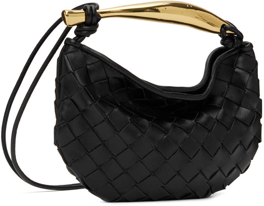 Черная мини-сумка из сардин. Черная сумка на плечо из зернистой кожи ягненка, вытканная интреччато.