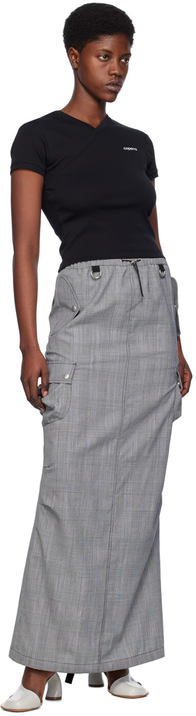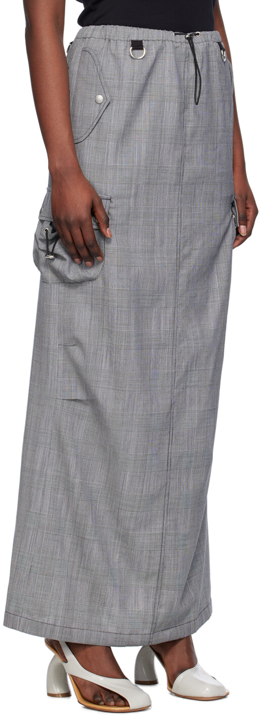 Серая длинная юбка карго строгого кроя. Юбка из твила из натуральной шерсти. Узор в клетку Glen по всей поверхности. Низкая посадка Кулиска в стиле банджи на эластичном поясе D-образные кольца на поясе Три кармана Скрытая кулиска по низу Прорезиненная нашивка с логотипом на по боковому шву Карман-книжка в боковых швах Центральная шлица по краю спинки· Без подкладкиЦвет поставщика: Черный/Белый Основная часть: 100% натуральная шерсть. Отделка: 100% вискоза. Сделано в Болгарии.