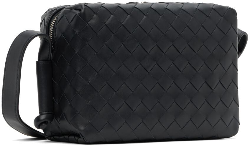Серая сумка на молнии. Серая сумка-мессенджер из зерненой кожи с плетением интреччато.
