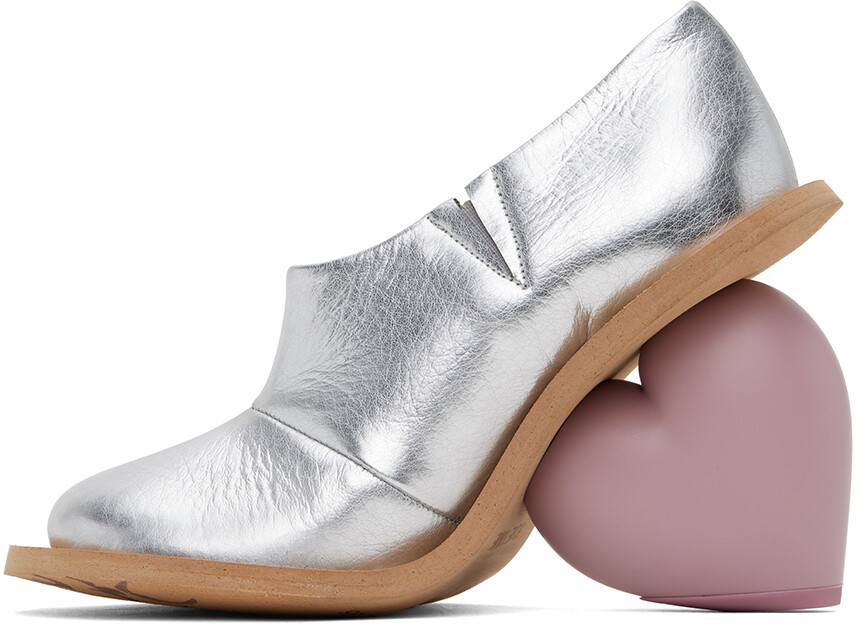 Серебряные мини-сапожки Love. Ботинки из полированной искусственной кожи до щиколотки серебристого металлического цвета. Скрытая эластичная ластовица с внутренней стороны Штамп с логотипом на мягкой стельке Подкладка из зернистой искусственной кожи Скульптурный каблук из каучука Neolite Каучук Neolite подошва Каблучок: H4" Цвет поставщика: Металлик/Розовый Верх: синтетика. Подошва: резина. Производство Португалия.