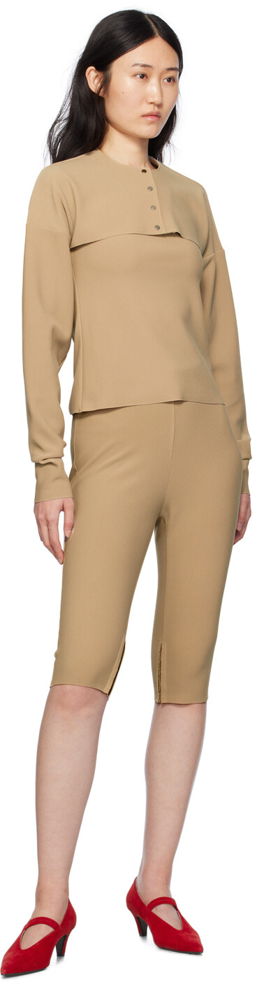 Серо-коричневые шорты Lay2. Шорты из эластичного крепа из полиэстера. Необработанные края по всей поверхности.