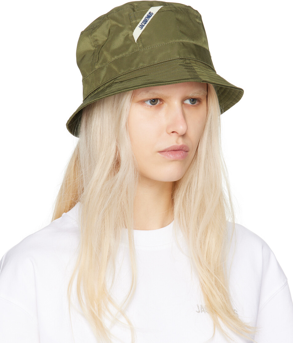 Зеленая панама Le Chouchou 'Le Bob Ovalie'. Зеленая шляпа-ведро из атласа, смешанного нейлоном и акрилом. Отрезок для карточек и флажок с логотипом на лицевой стороне Стеганые поля Металлические люверсы сзади Подкладка из хлопкового сукнаВходит в коллекцию Le Chouchou.Цвет поставщика: Хаки Основная часть: 90 % полиамид, 10 % акрил. Подкладка: 100% хлопок. Сделано в Италии.