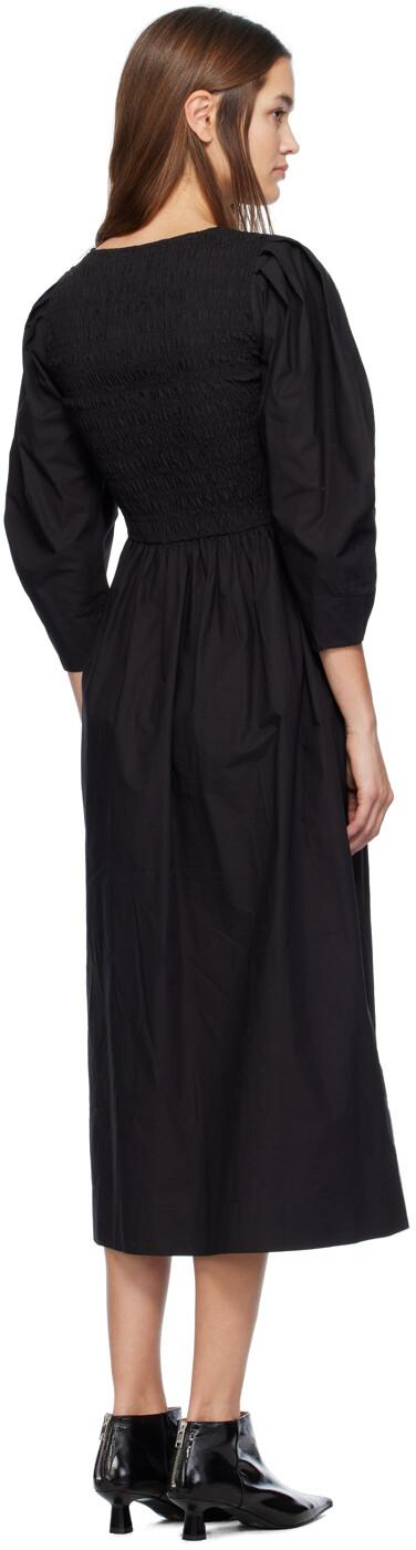 Черное платье макси со сборками. Платье из органического хлопка из поплина. Сборка и сборка. · Квадратный вырез горловины