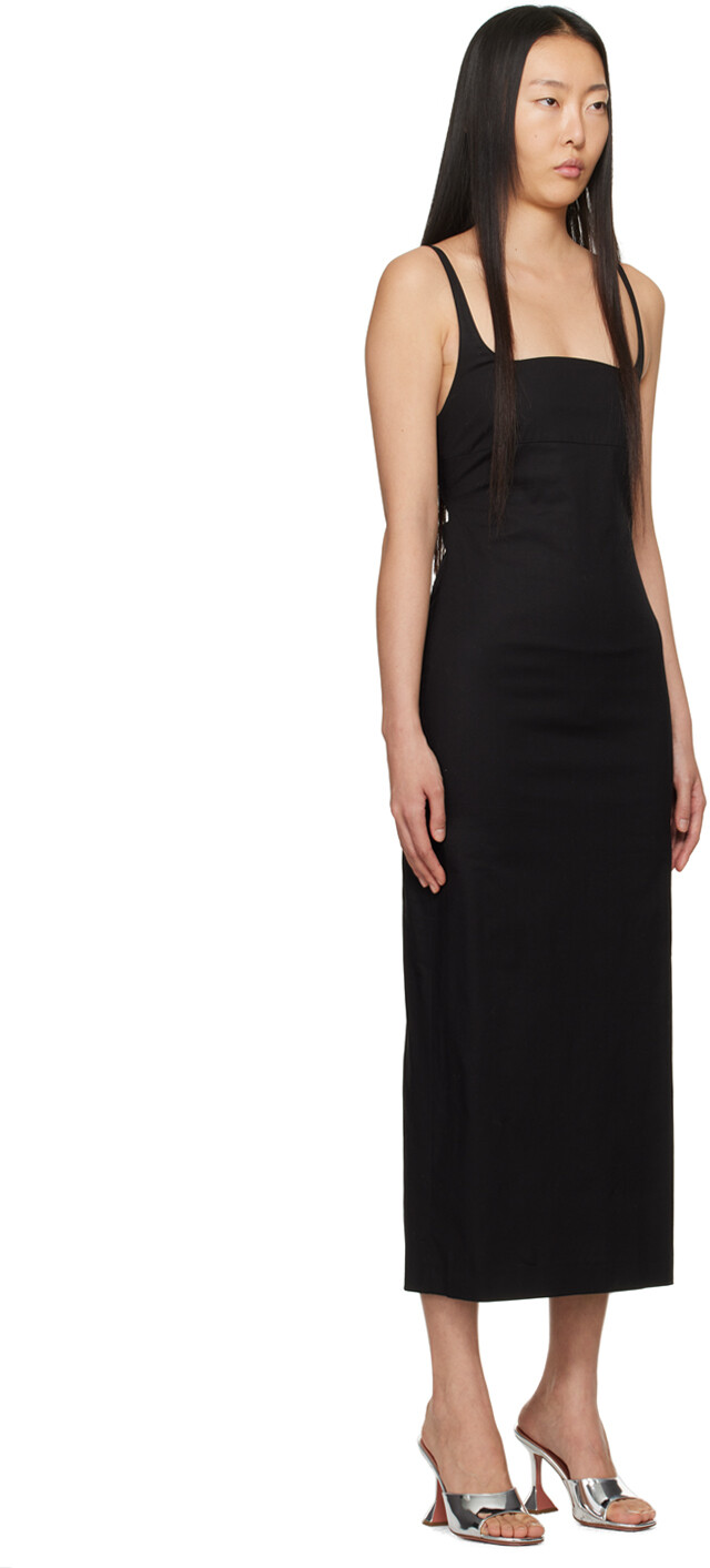 Черное платье макси со сборками. Платье из эластичного хлопкового поплина. Модифицированный квадратный вырез Регулируемые бретельки-спагетти Регулируемая застежка-молния, сборка и вырез сзади Потайная застежка-молния сзади Центральная шлица по краю спины Частичная подкладка из сатина. Цвет поставщика: черный. Основная часть: 97 % хлопок, 3 % полиуретан. Подкладка: 100% полиэстер. Сделано в Южной Корее. 241732F055000