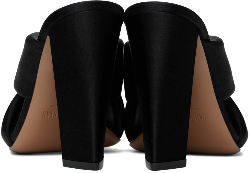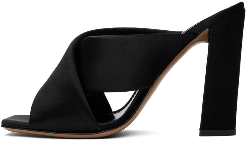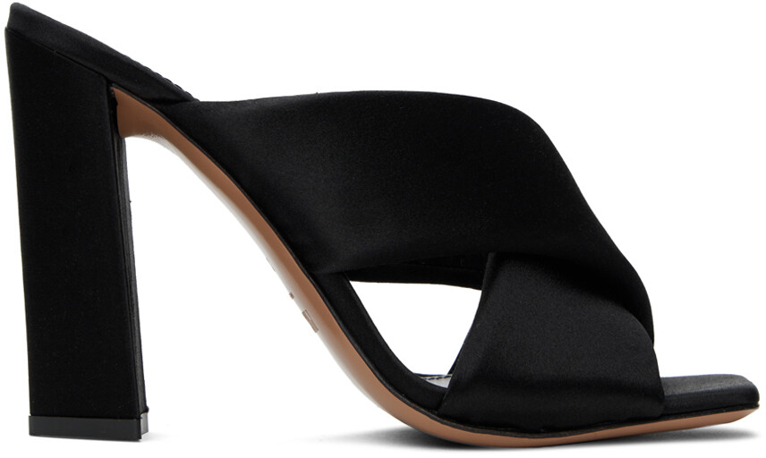 Черные босоножки на каблуке Dafne. Атласные босоножки на каблуке черного цвета. · Открытый квадратный носок · Мягкие перекрещивающиеся ремешки на союзке Тисненый логотип на мягкой кожаной стельке · Подкладка из зернистой кожи · Обтянутый блочный каблук с резиновыми вставками · Кожаная подошва · Каблук: H4" Цвет поставщика: Черный Верх: текстиль.Подошва: кожа.Производство: Италия.