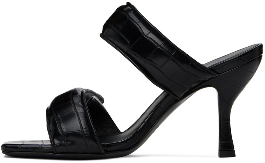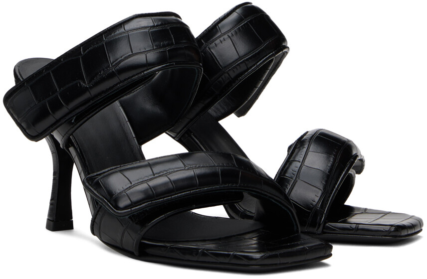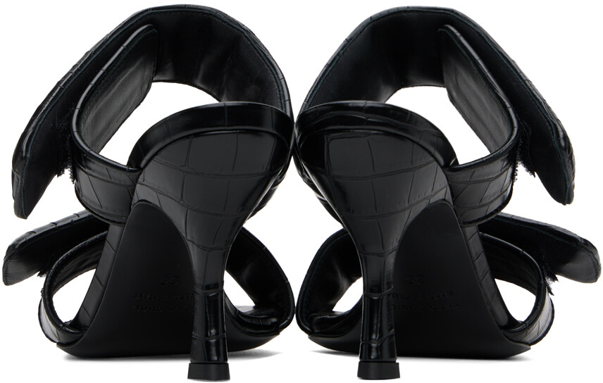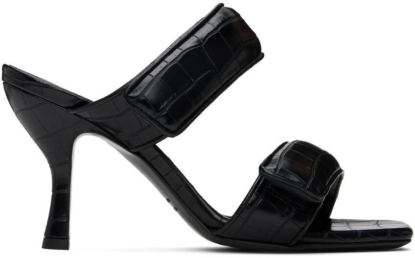 Черные босоножки Perni 03 на каблуке под крокодила. Черные босоножки без шнуровки из искусственной кожи с тиснением под крокодила. Открытый квадратный носок Мягкие ремешки на липучках на союзке Тисненый логотип на стельке Обтянутый каблук-шпилька с резиновыми вставками Кожаная подошва Каблук: H3,75" Цвет поставщика: Черный Верх: синтетика. Подошва: кожа. Производство Италия. 241671F125007