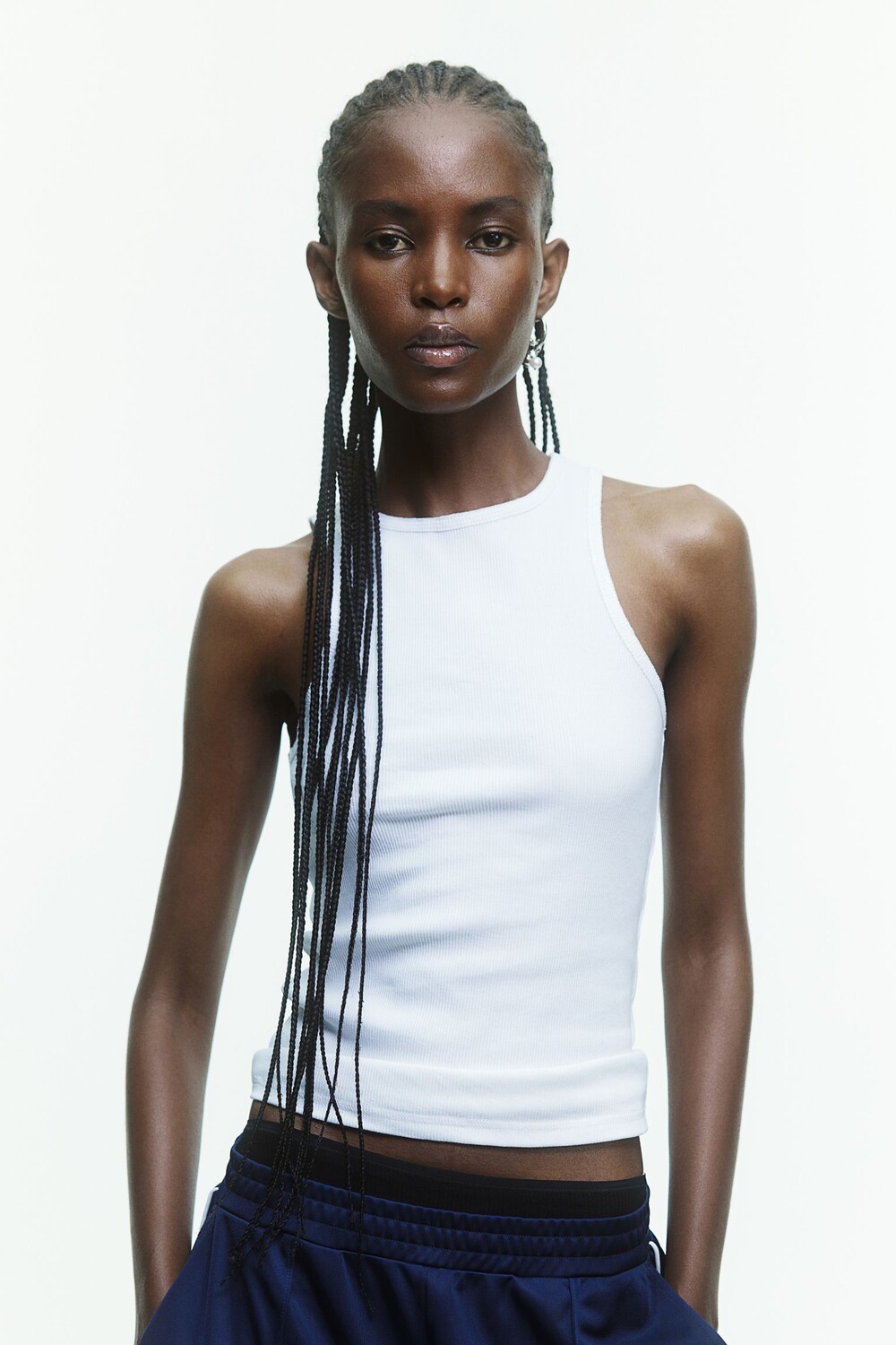 Топ из хлопкового трикотажа в рубчик. Узкий крой сверху, прямой низ.