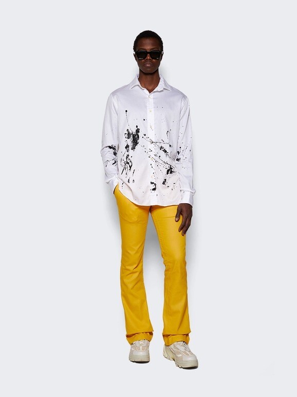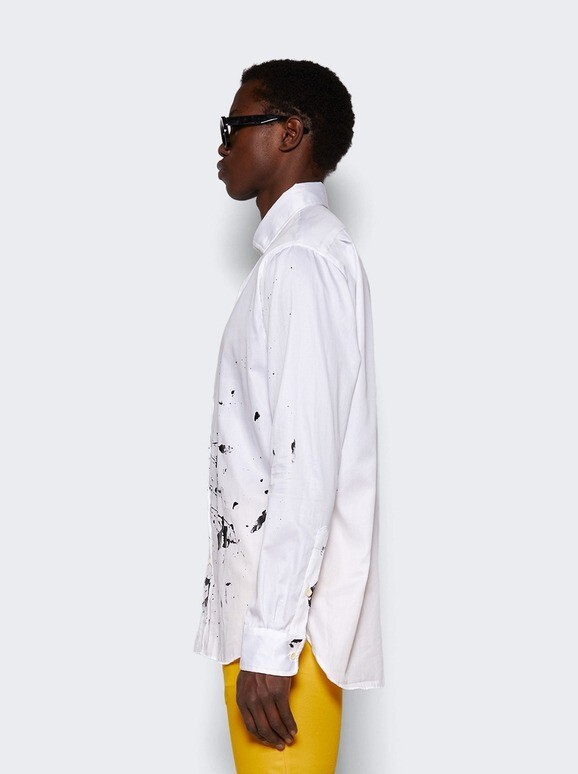 Видение традиционной рубашки с длинными рукавами и воротником на пуговицах ; построенный полностью из египетского хлопка, украшенный искусно нарисованными вручную брызгами.