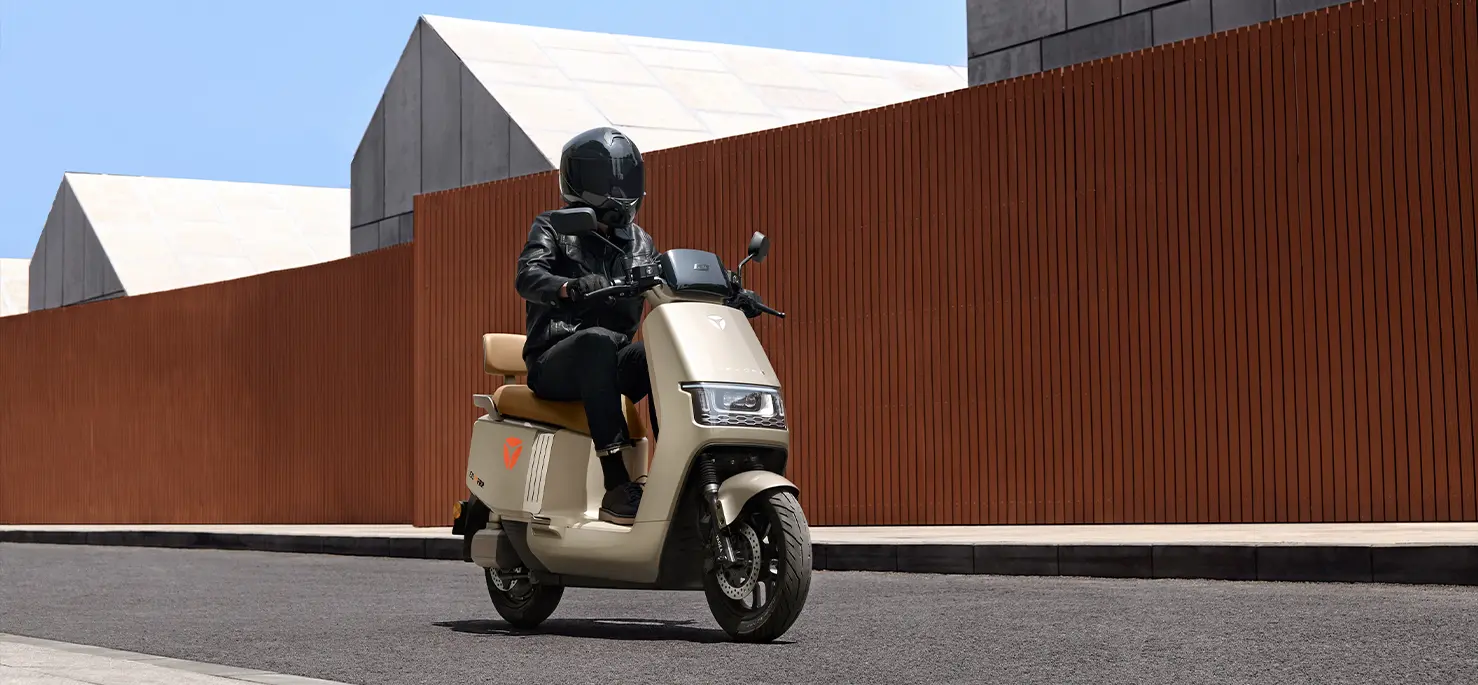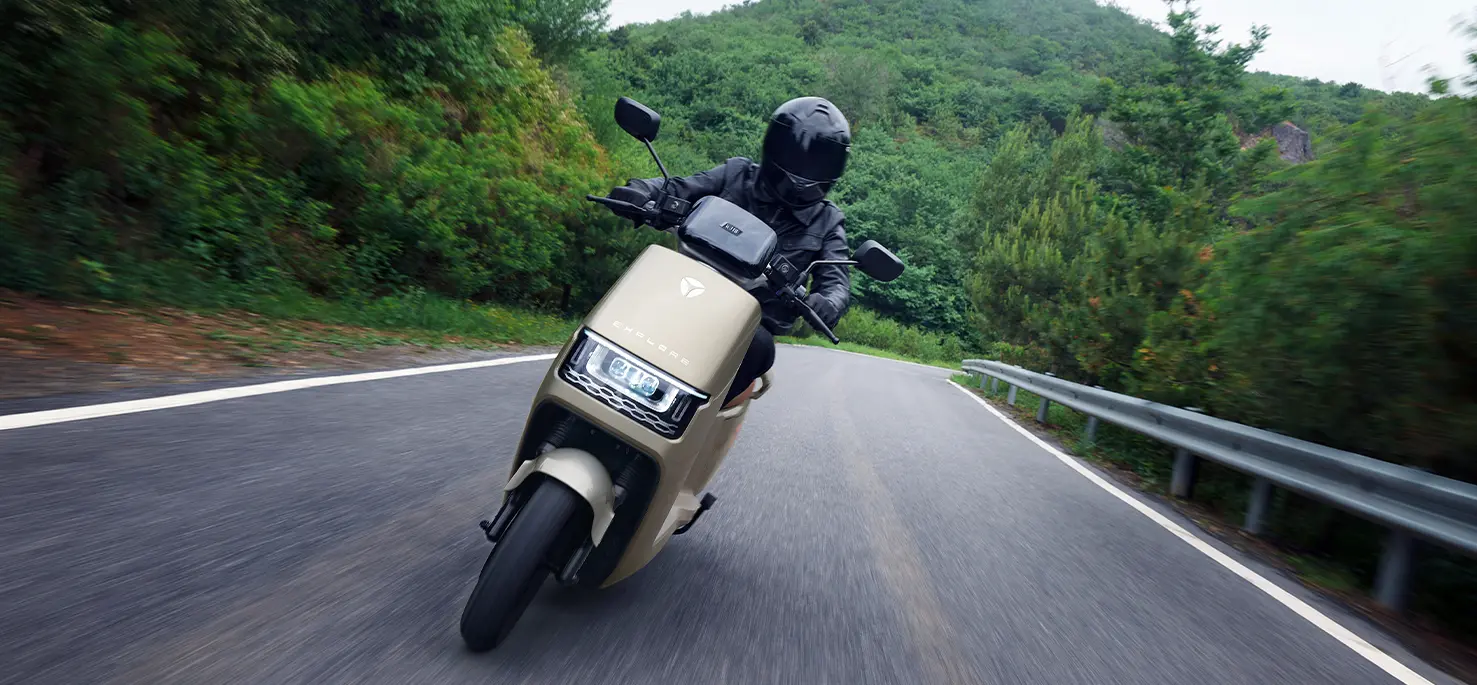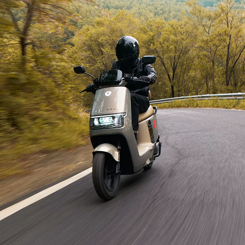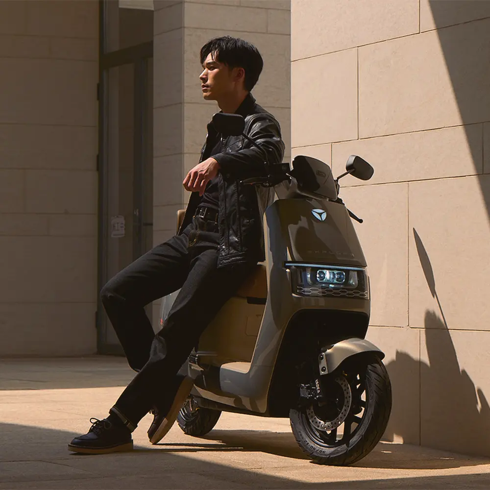 Внешний вид Yadea E10 имеет пик городского эстетического дизайна: упрощенные, жесткие линии контура, новый дизайн света, серебристые соты решетки радиатора, встроенные трехмерные матричные трехлинзовые лампы с высокой яркостью и большим диапазоном. Верхняя часть фар оснащена однолинейной светодиодной полосой, а над ними располагается рельефная надпись Explore. Основной цвет скутера - "шампанское", а цвет интерьера - хаки, что дополняет оригинальную цветовую гамму.